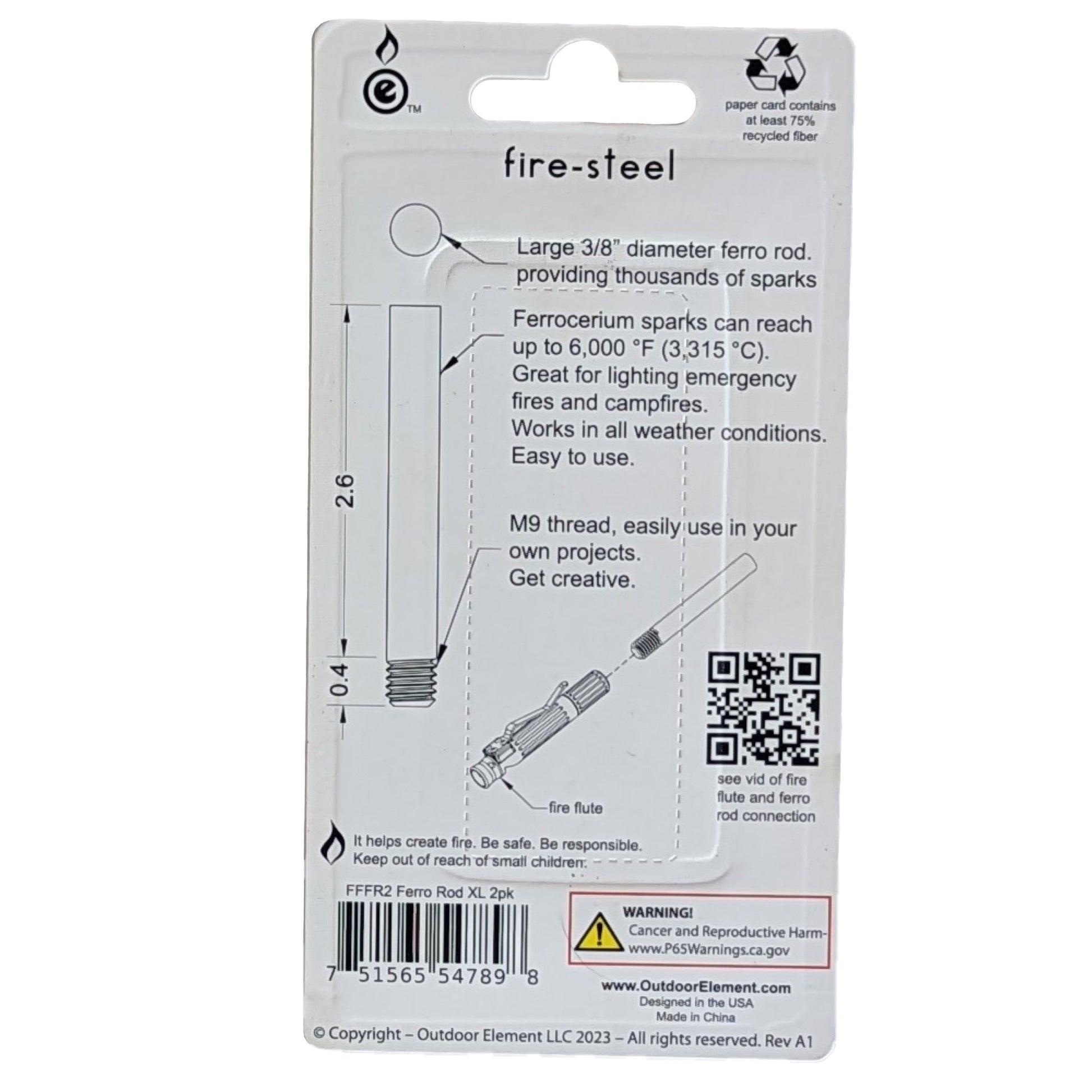 XL Fire-Steel Replacement 2pk Ferro Rod for Fire Flute