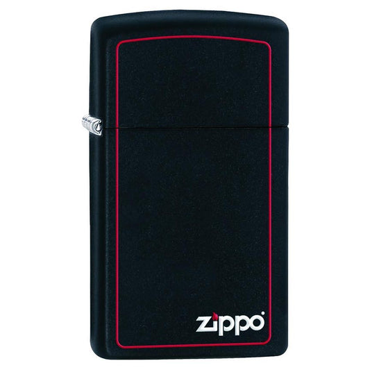 Zippo Windproof Lighter Slim Black Matte W/zippo Logo & Red Border