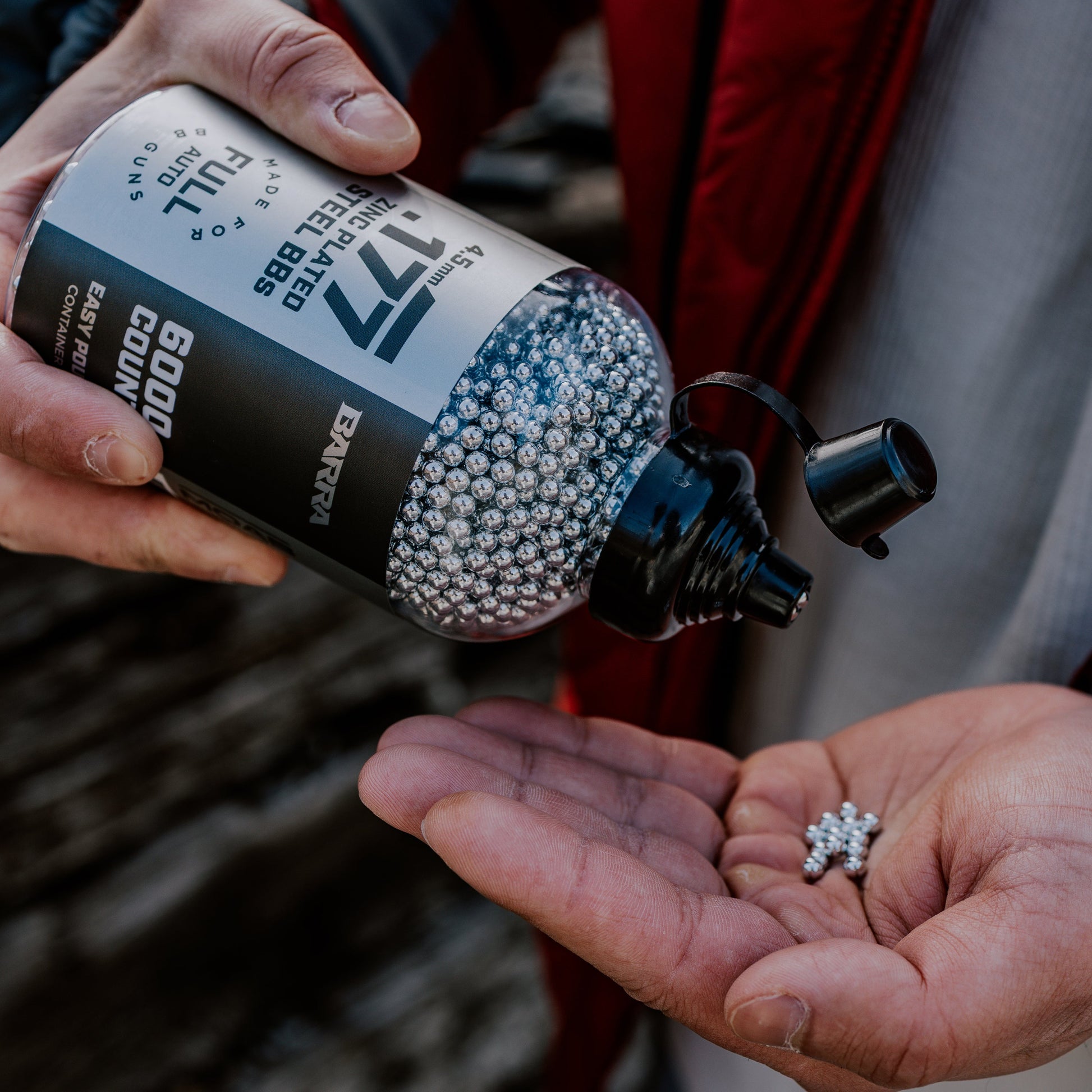Designed for precision, engineered for performance. Barra Airguns Zinc-Plated Steel BBs have been rigorously tested in a wide range of airguns, across different climates and shooting conditions, ensuring top-tier reliability. While optimized for the 400e full-auto air rifle, these BBs deliver exceptional performance in CO₂, multi-pump, and spring-powered airguns alike.