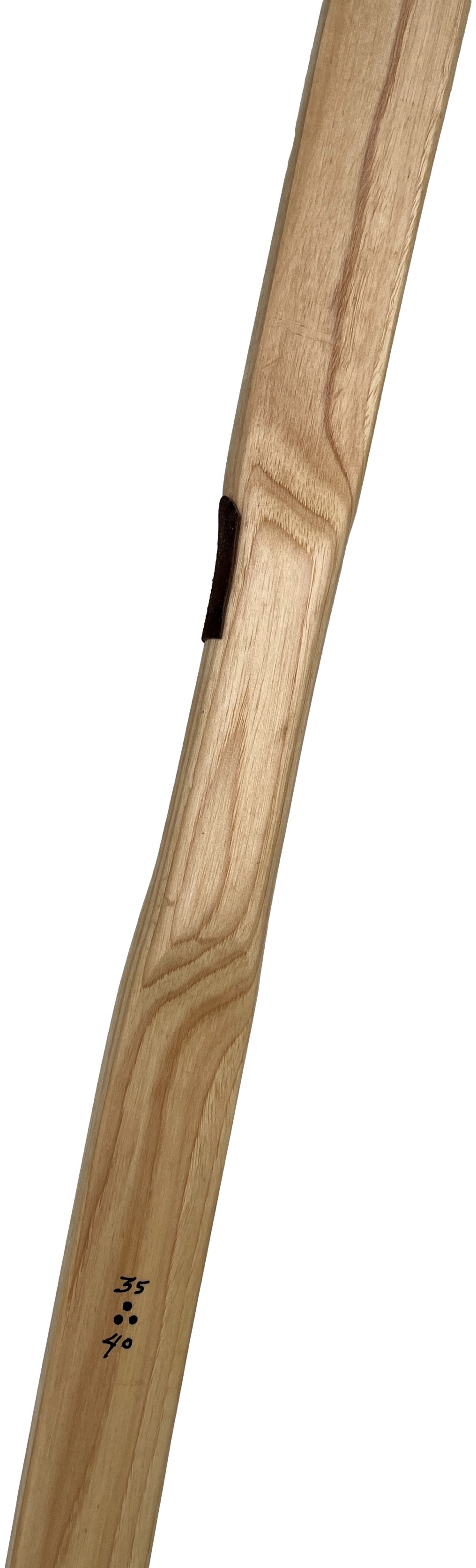 The Algonkian Bow is typical of what would be found in a warriors hands in the battlefield 300 years ago. It was also used for hunting, And bringing substance into the family. Made from a single stave of solid Hickory taken from the Eastern seaboard of the United States.