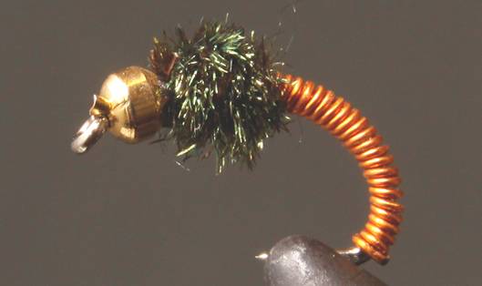 The BH Brassy is the predecessor of the Copper John. Fish really like to take this fly as a worm, nymph or other insect.