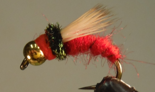 This bright red MRD or “Meal Ready To Eat" is a great attractive Caddis nymph.