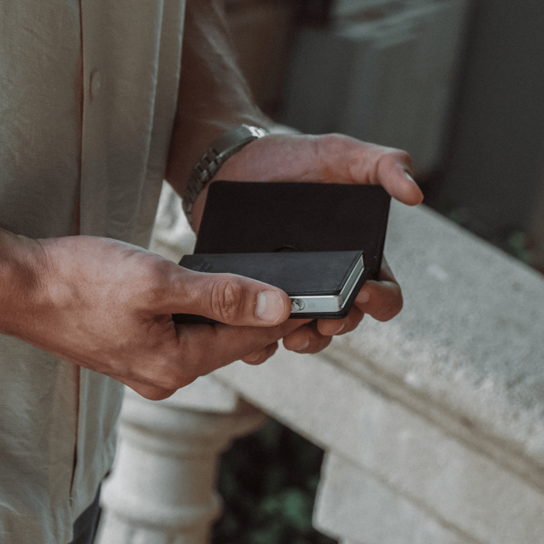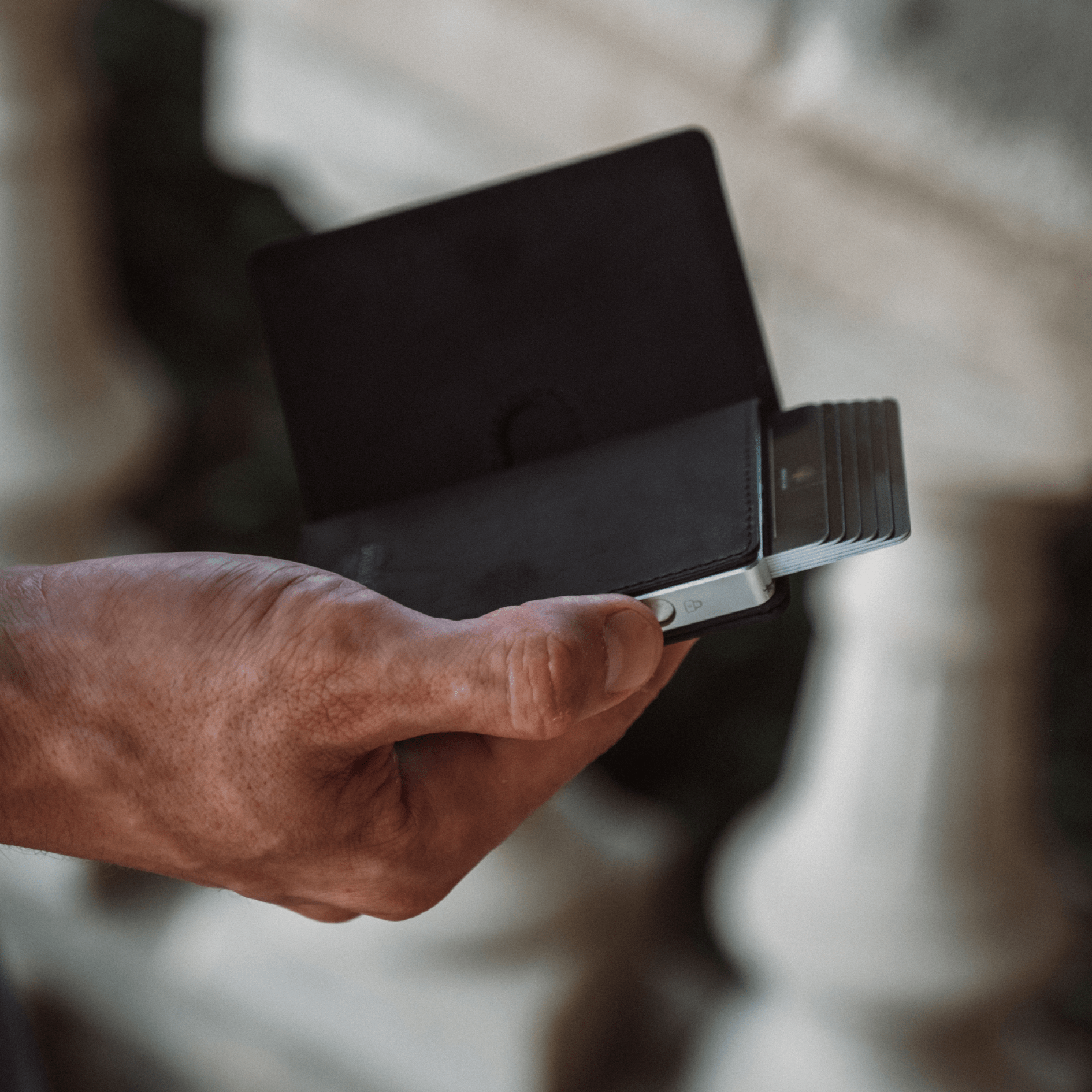The wallet seamlessly combines form and function, comfortably holding up to 10 cards and cash. Small design details, such as a notch on the back for smooth switch operation and a metal plate for added security, showcase our commitment to a flawless user experience.
