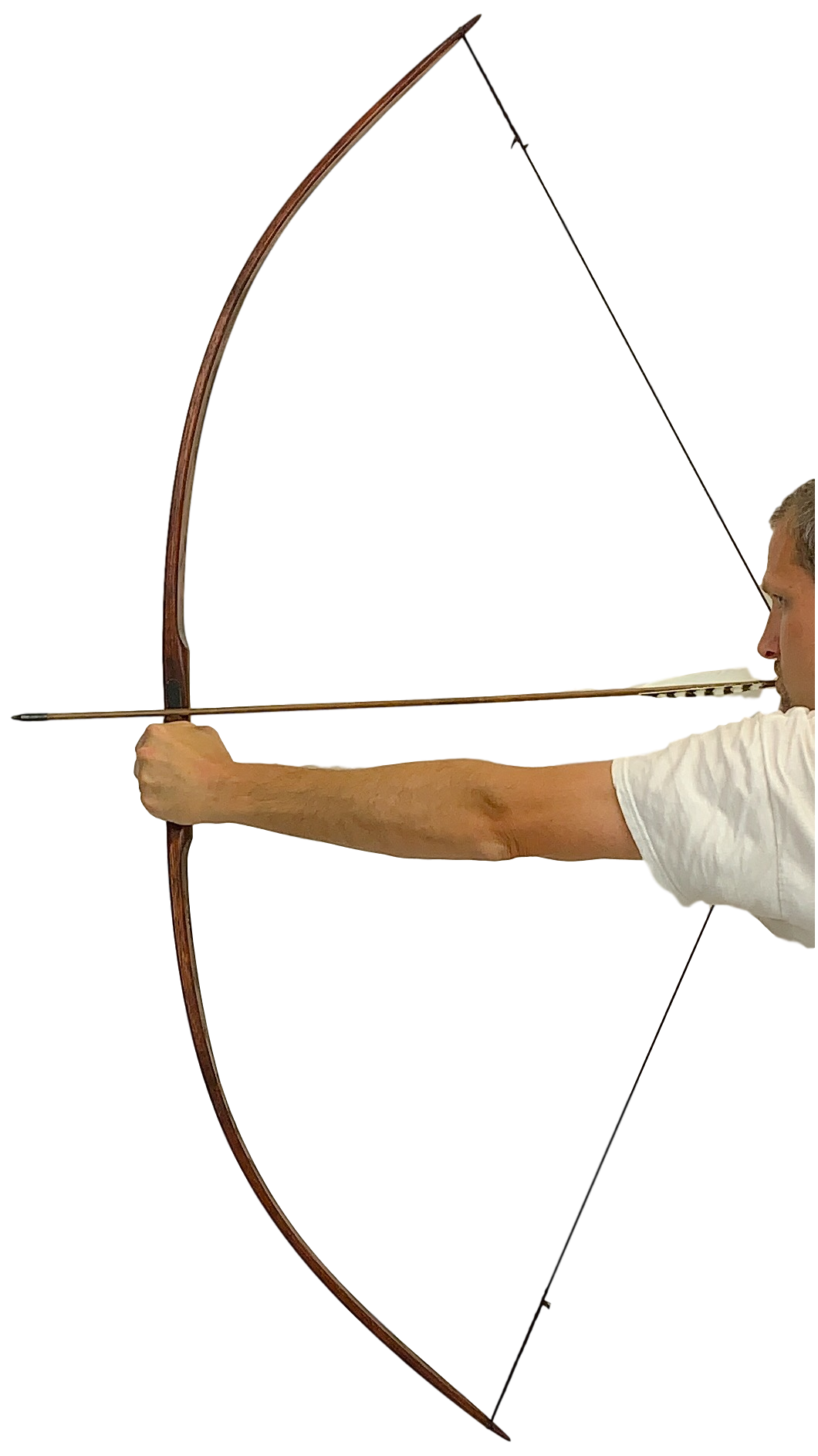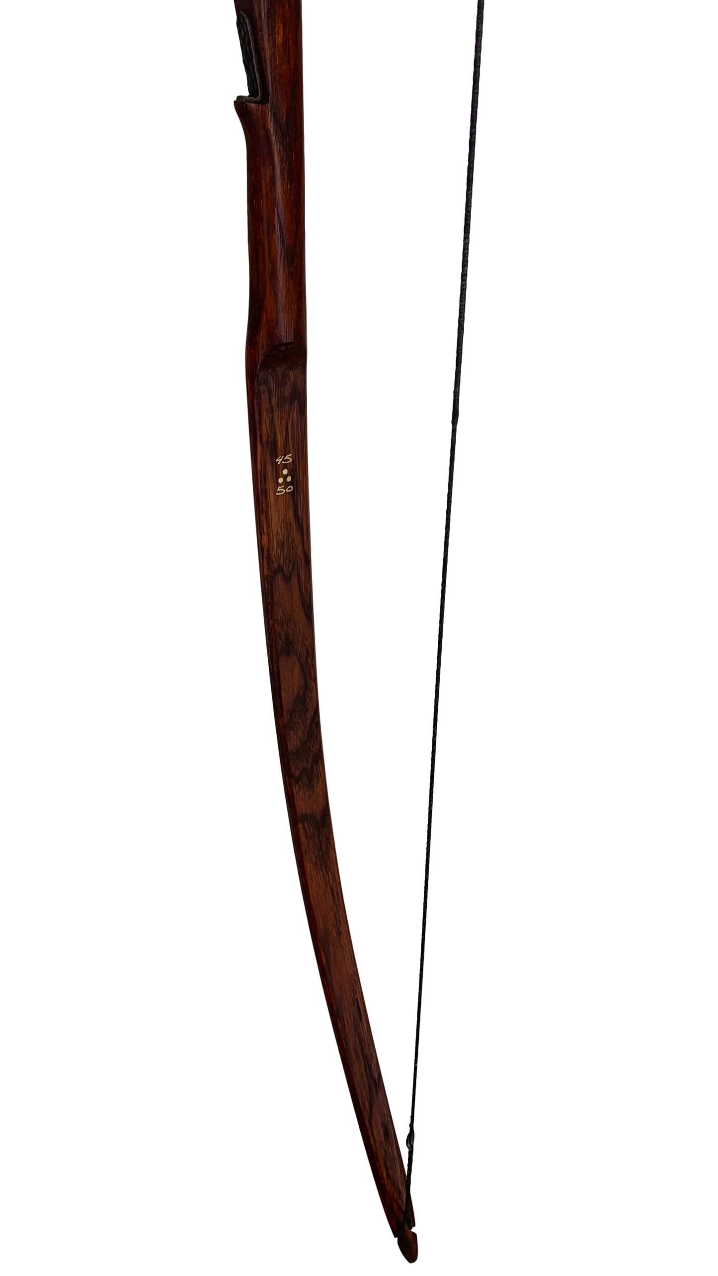 The 65" Bushman Flatbow delivers more then enough energy to take down most any large game. Approx 65" tip to tip - built for getting around in the forest and brush with ease. Perfect length balances stability, smooth draw and reliability when you are in the field. Stained a leather dark brown for bowhunting purposes, and better concealment in the forest.