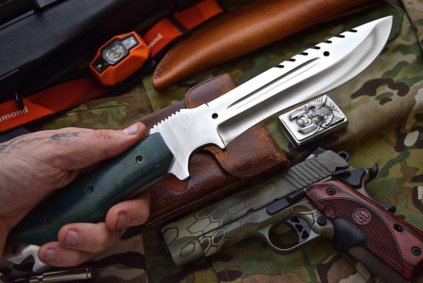 Combat Bushcraft Survival Camping Knife - Custom Handcrafted D2 Mirror Polished Steel Blade, Micarta G10 Handle, 13.5" Overall Length | Leather Sheath | KBS Knives