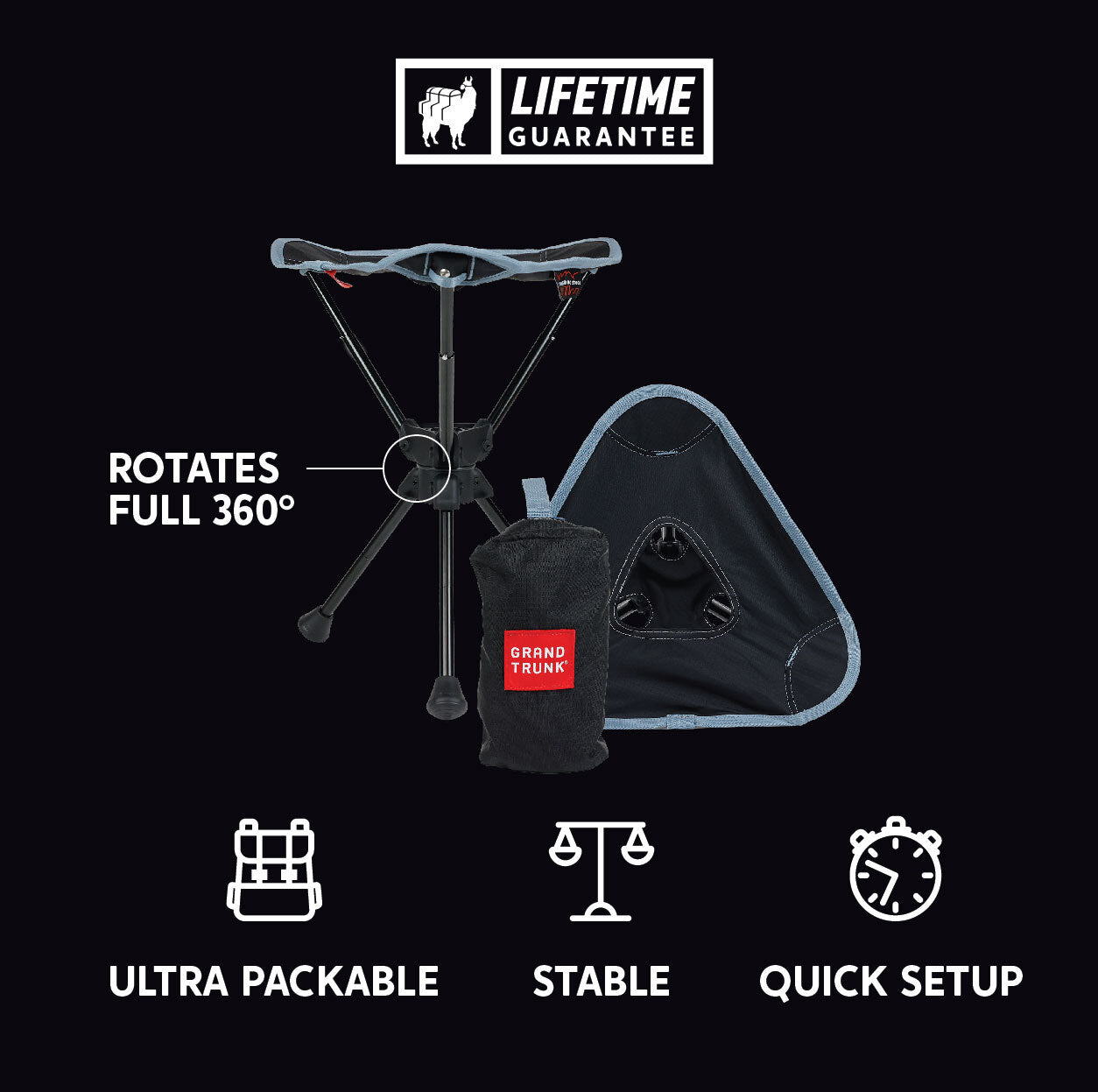 Introducing the Grand Trunk Compass 360° UC (Ultra Compact) Swivel Stool! The ultimate solution for on-the-go comfort in a pint-sized package. Engineered with innovation and practicality in mind, this stool redefines portability, packing down to a mere 7.5 inches when collapsed.