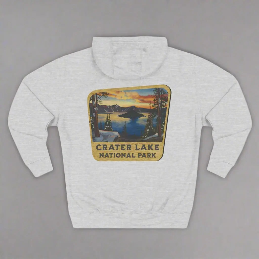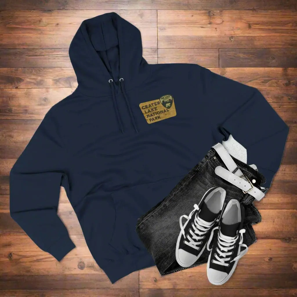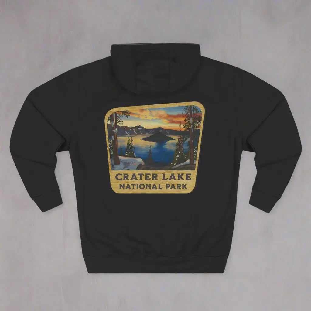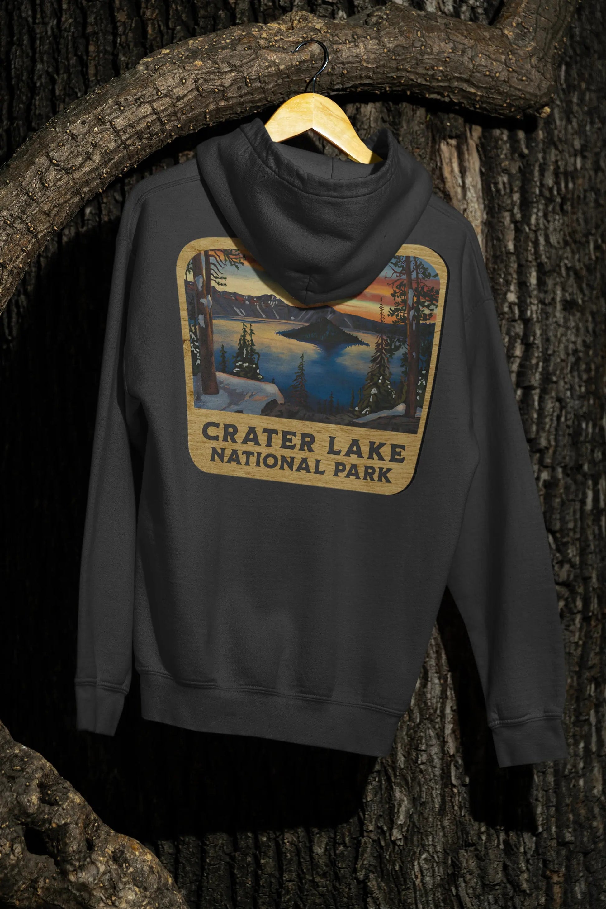 Crater Lake National Park Unisex Fit Fleece Hoodie Scenic View Graphic Wooden Mountain Sign