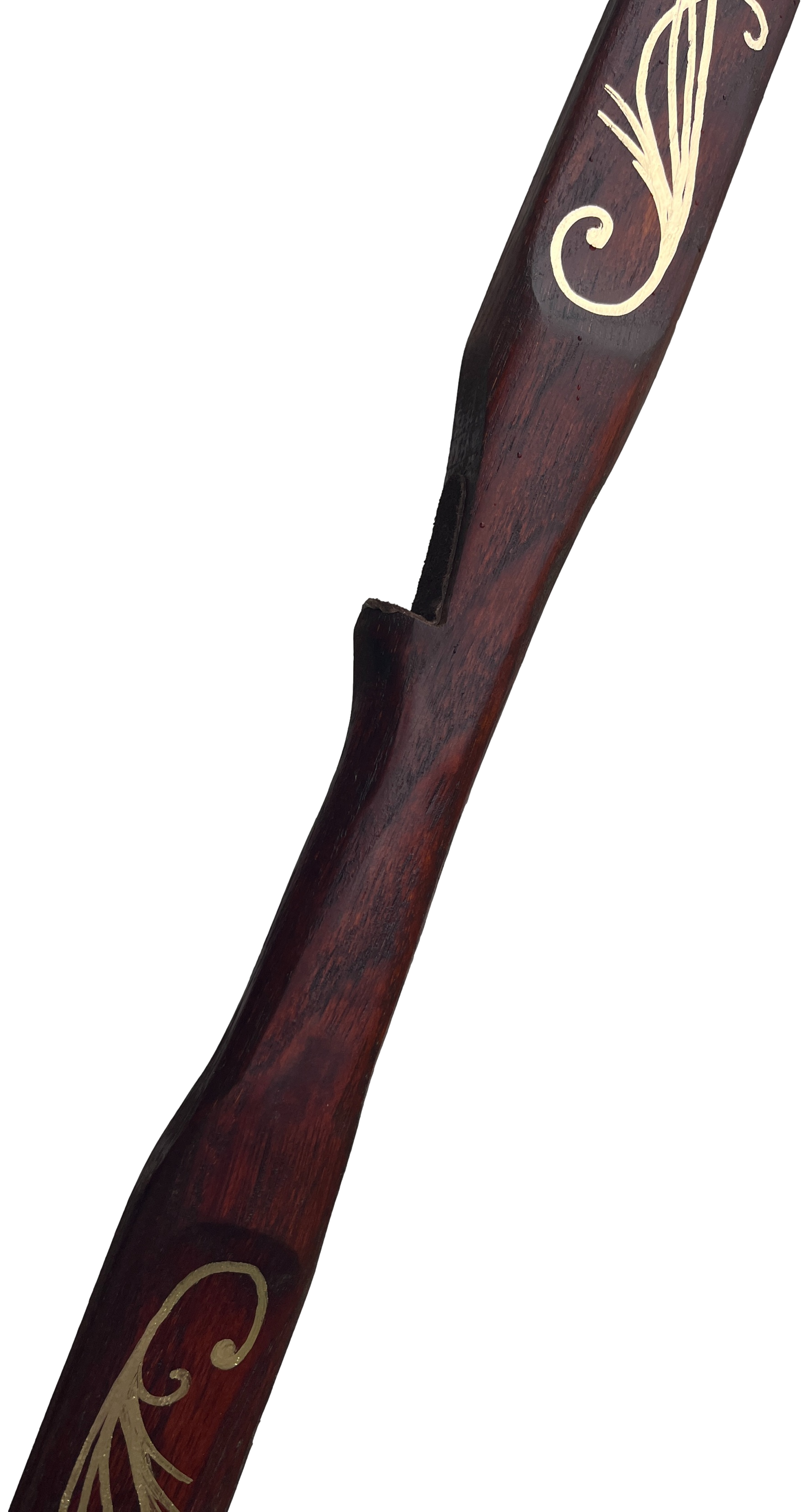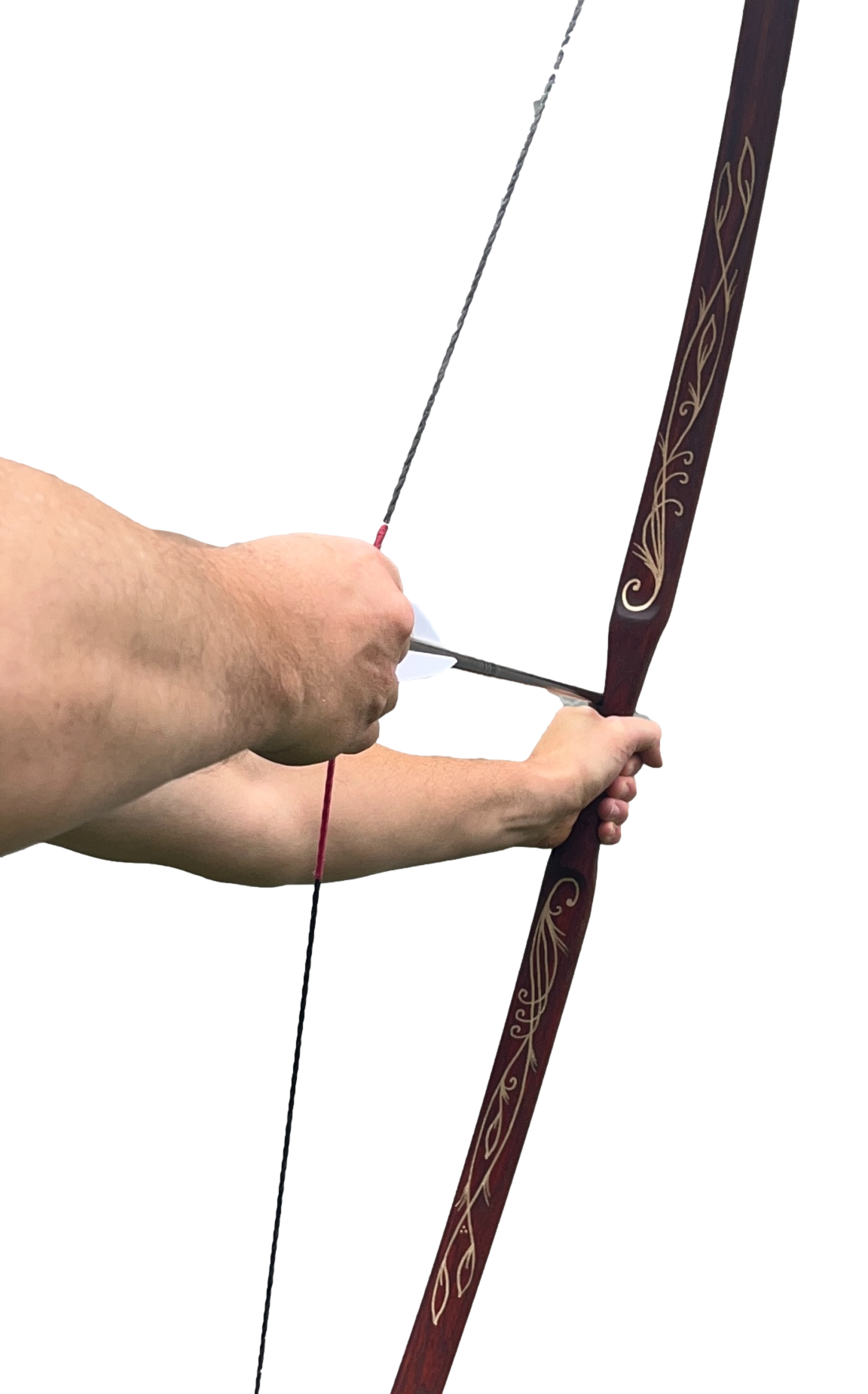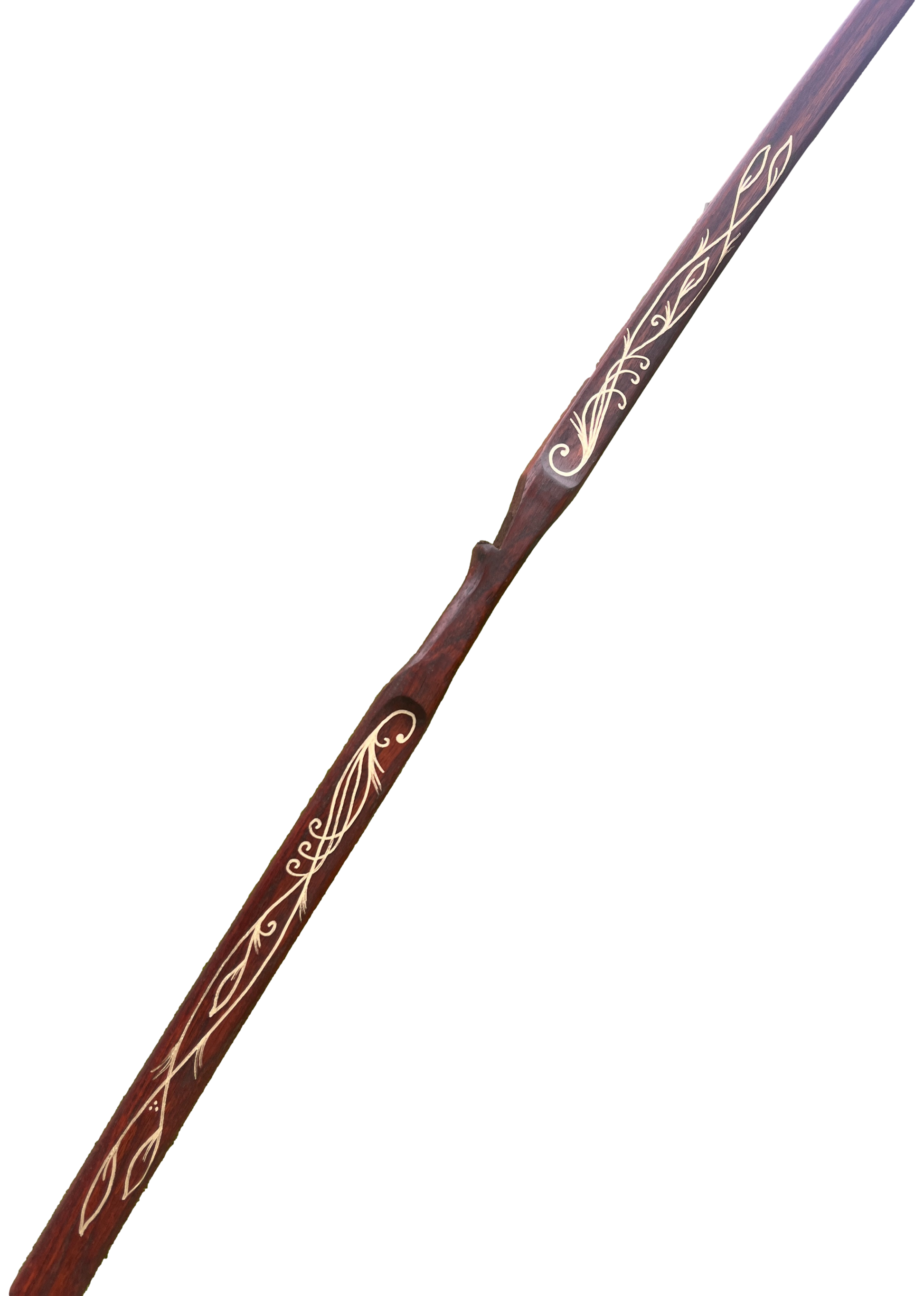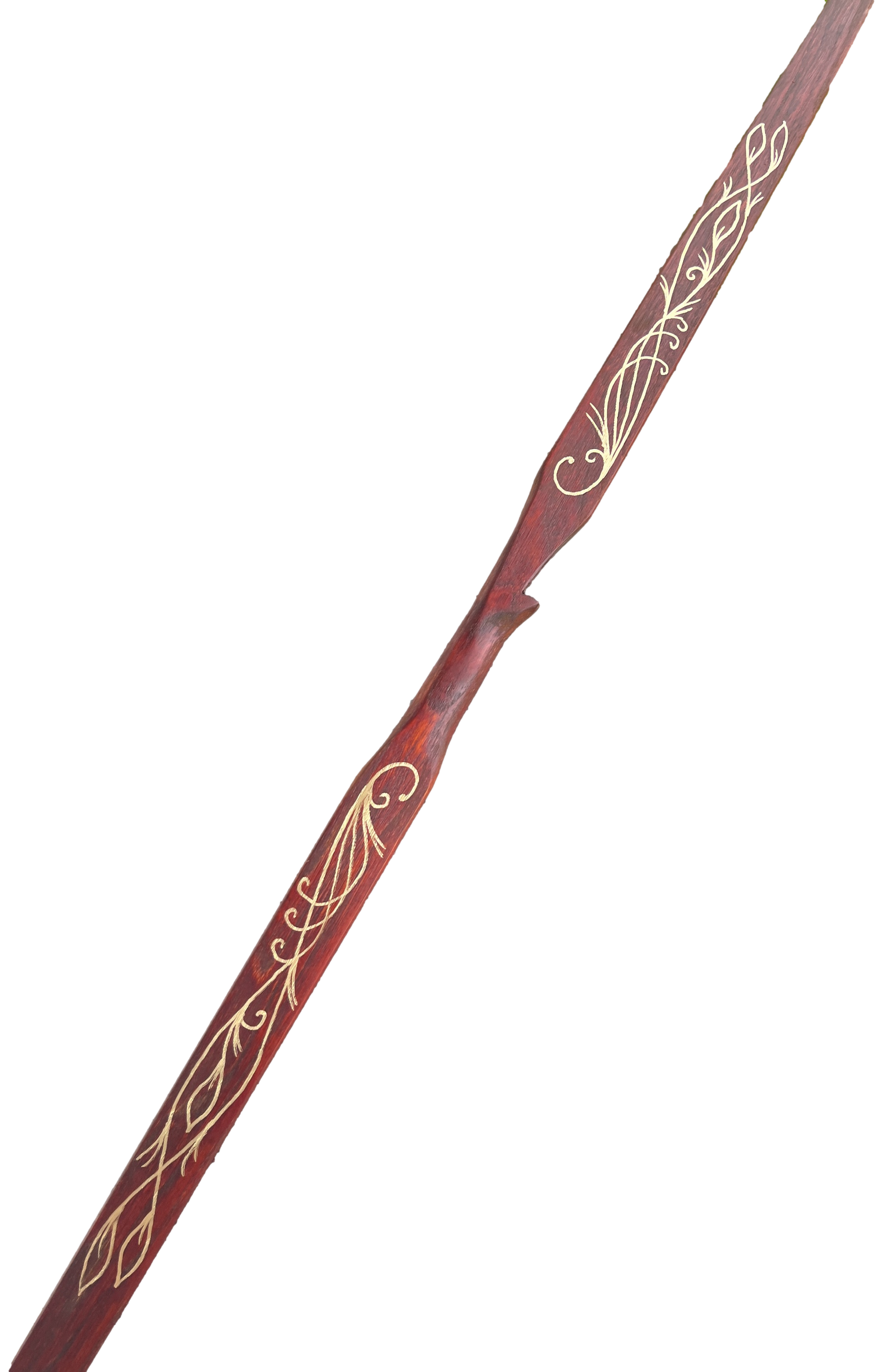 Inspired by the elves of the J.R.R. Tolkien and the Lord of the Rings movies, the Elven Army Bow was designed to capture the powerful yet beautiful bows that would have been carried by Elves. This is a very versatile bow, can be easily slung over your back to allow you to navigate through the woods and hills. Then simply pull back and take aim at your target. The Elven Army Bow is a uniquely handcrafted bow with beautiful golden artwork to truly capture the essence of the elves and the power of a fully functional longbow. Each bow has a leather dark brown stain and painted with gold accents. If you wish, your name can be painted below the banner as well.