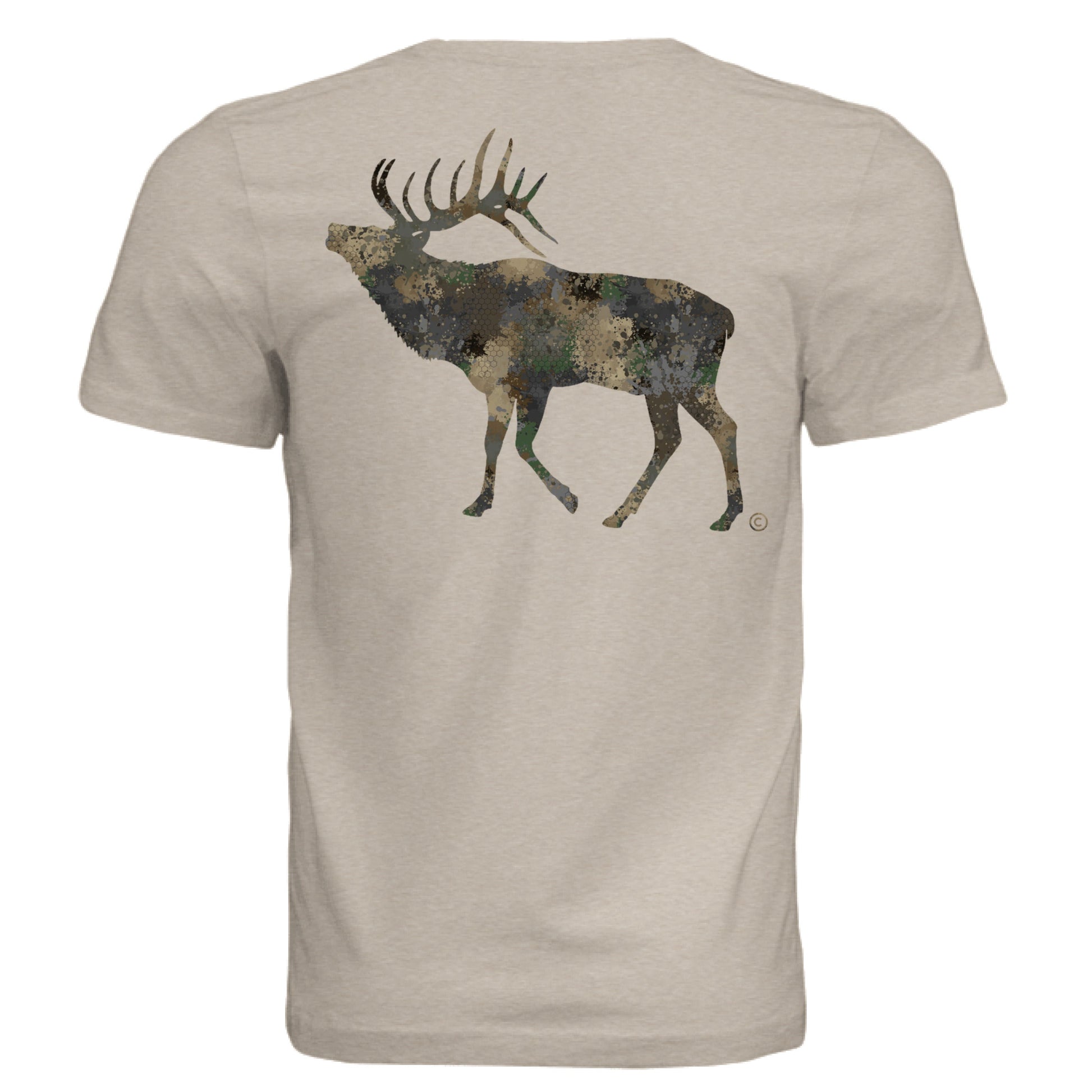 Answer the call of the high country with the Forest Splash Burst Camo Elk T-Shirt. Featuring a rich forest-inspired splash camo backdrop and a powerful elk graphic, this shirt embodies the adventure of chasing bulls through rugged timber. Crafted from a soft, breathable cotton-poly blend, it’s built for all-day comfort — whether you’re glassing ridgelines, trekking through dense cover, or swapping hunt stories back at camp. Perfect for hunters who live for the wild.