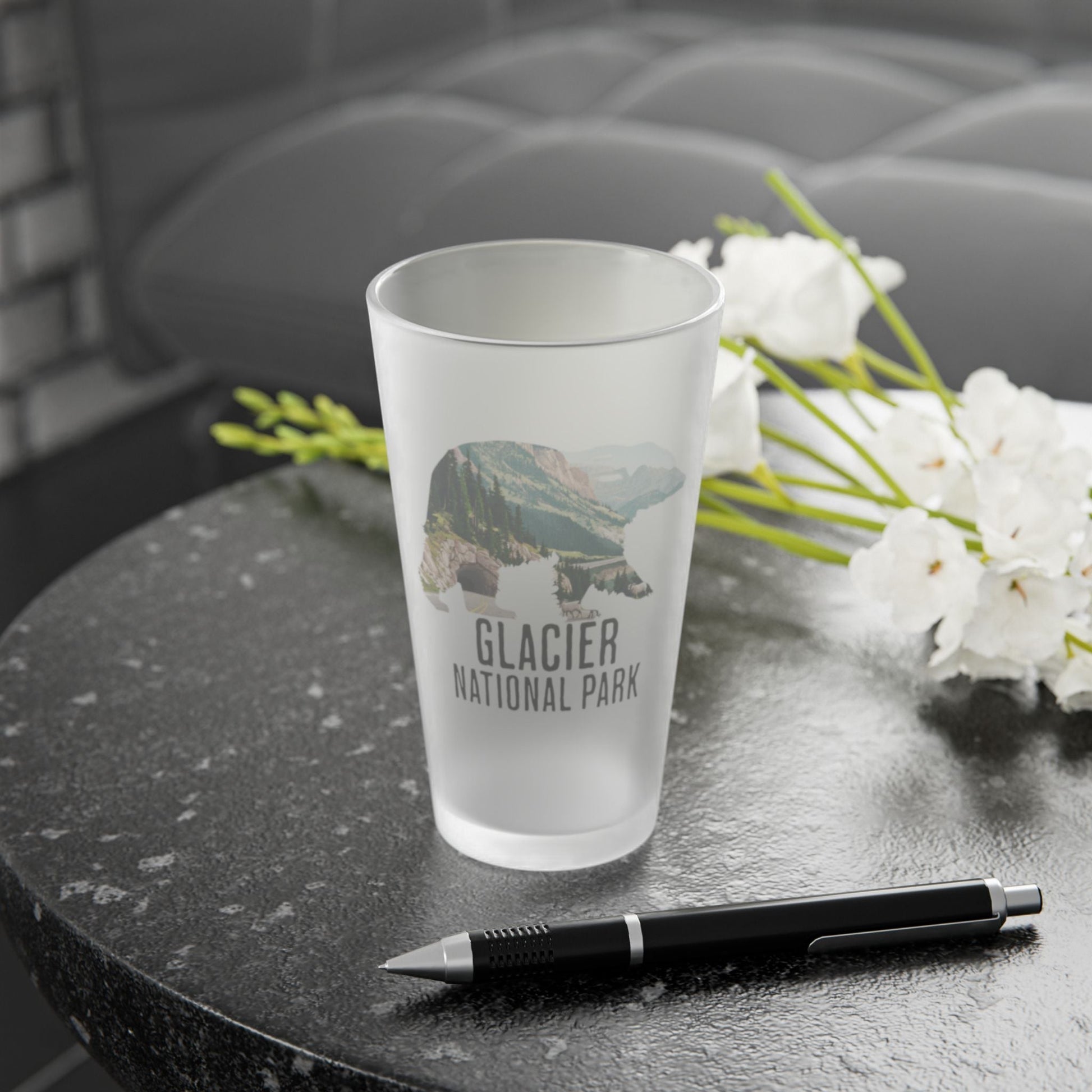 Glacier National Park Grizzly Bear Frosted Pint Glass