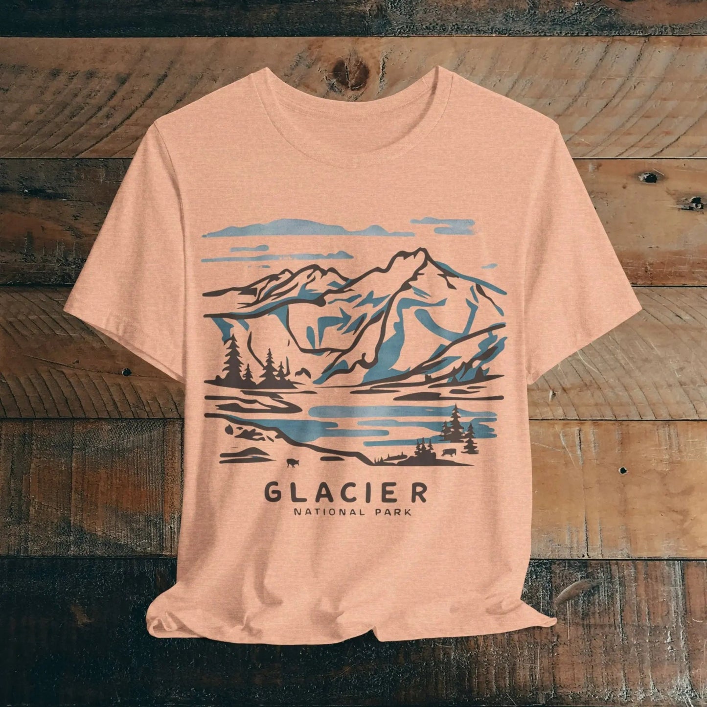 Glacier National Park Unisex Fit Soft T-Shirt Watercolor Line Art
