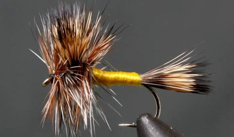 This yellow bodied Grizzly Wulff is a variation of the classic Royal Wulff mayfly attractor pattern. This fly is versatile and can be used in many settings to match the mayfly hatch.