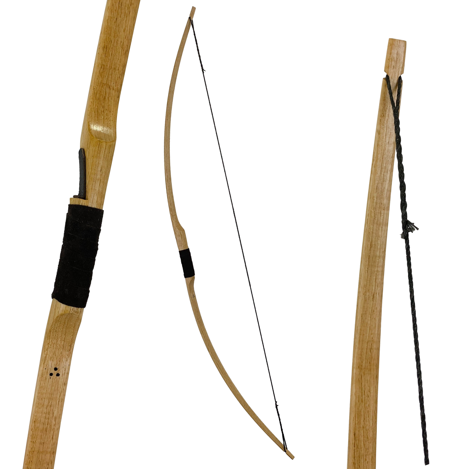 Finally, A handcrafted Youth Longbow with a limited draw weight for a beginning archer. It is a great bow for target shooting. The Heritage Youth Longbow is made from solid hickory, stained golden oak and has an arrow shelf for easy arrow placement. The handle is wrapped in a genuine leather cord.