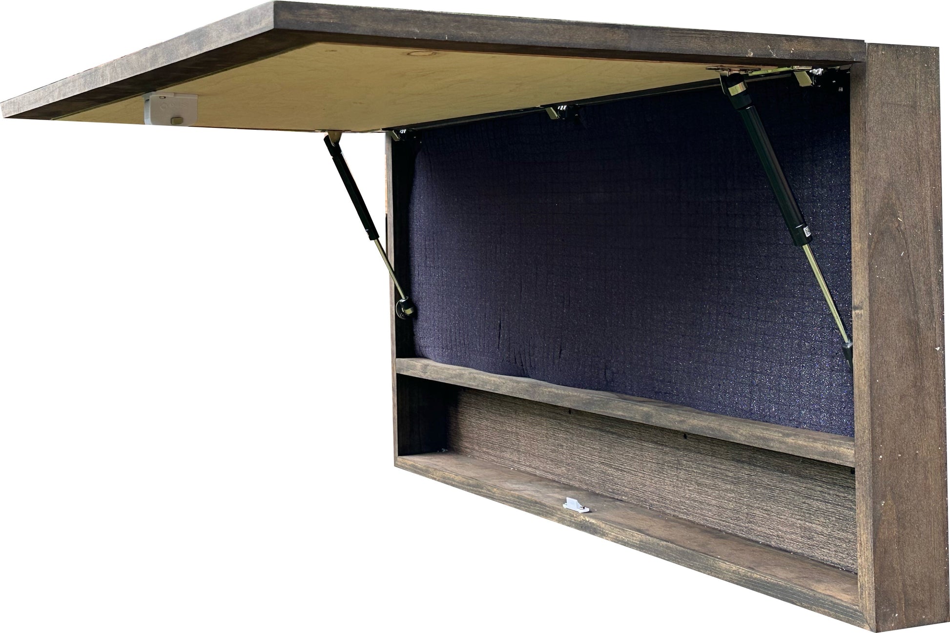 This concealed gun cabinet is large enough to hold a standard AR-15, a large collection of handguns, tactical gear and it also comes with open storage in the bottom for extra storage!