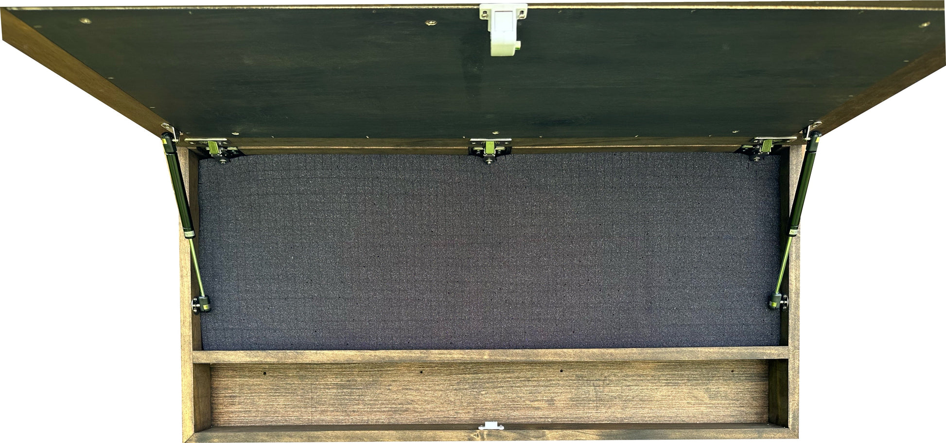 This concealed gun cabinet is large enough to hold a standard AR-15, a large collection of handguns, tactical gear and it also comes with open storage in the bottom for extra storage!