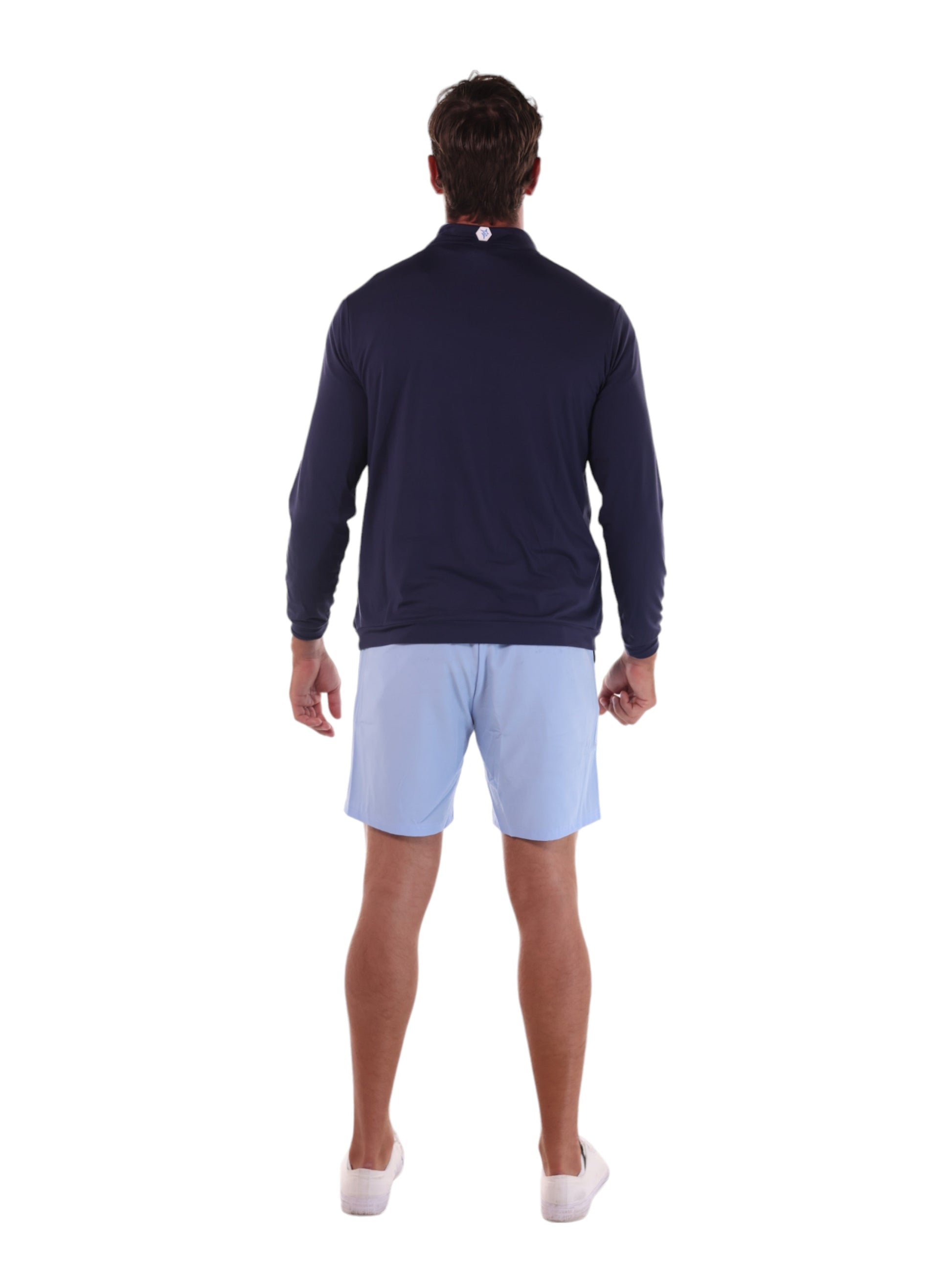 Performance quarter zip featuring lightweight soft poly spandex wicking fabric. Sun Protection, UV50 and patented silicone sleeve grip which holds your sleeves in place. Perfect for spring and summer with lightweight performance fabric that has smooth hand feel. A great layering piece under a vest or jacket for cooler days.