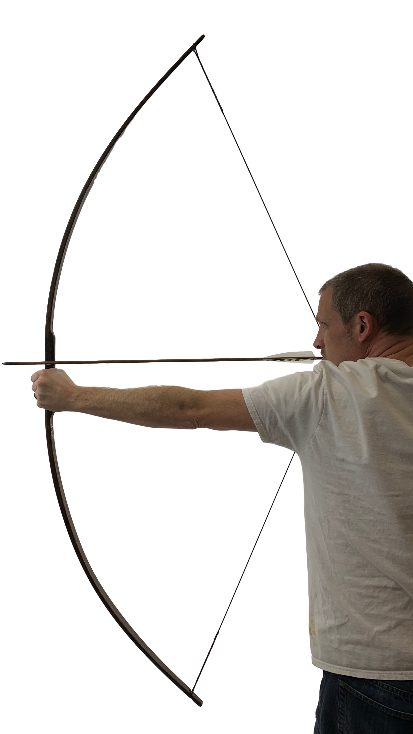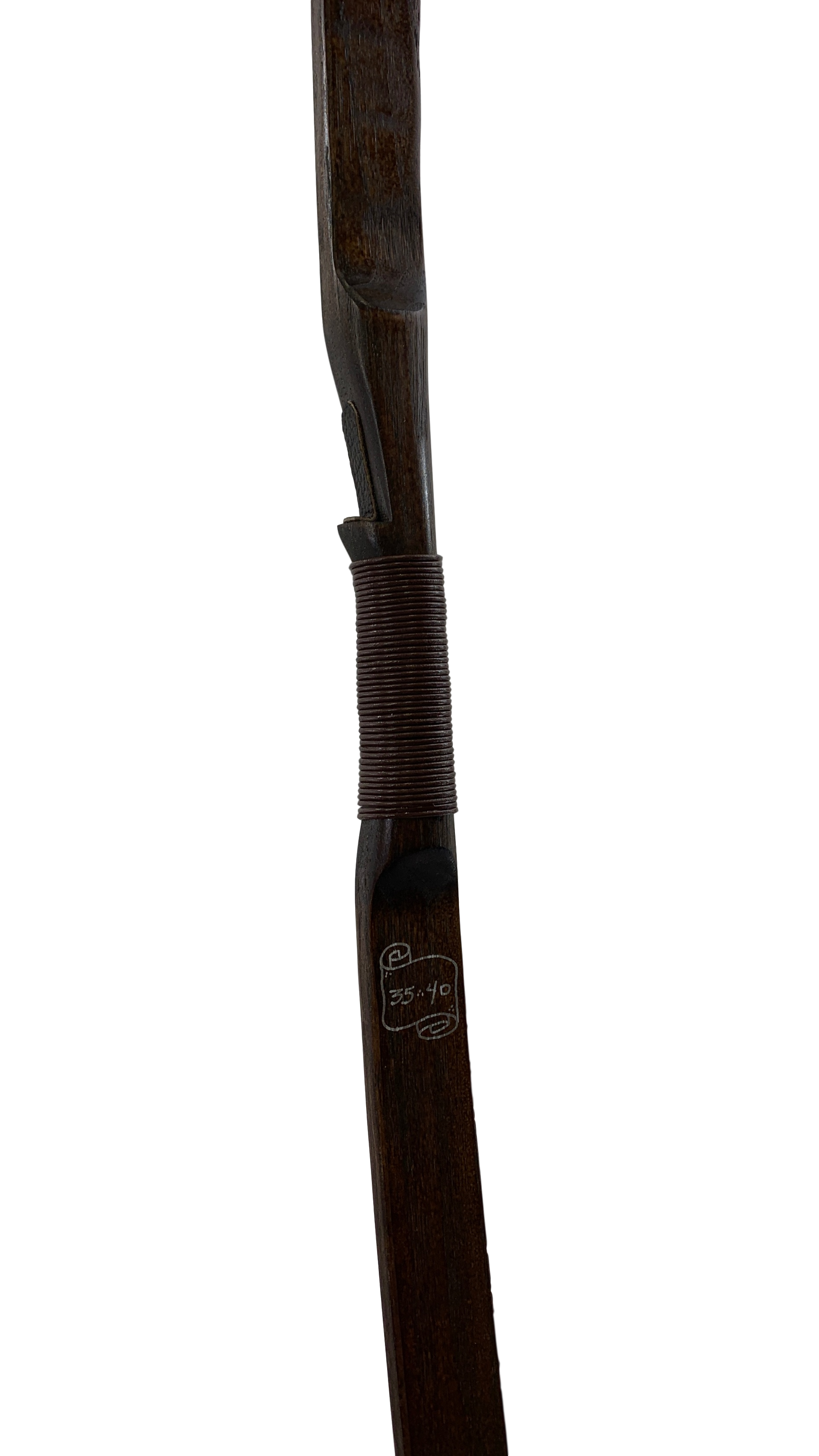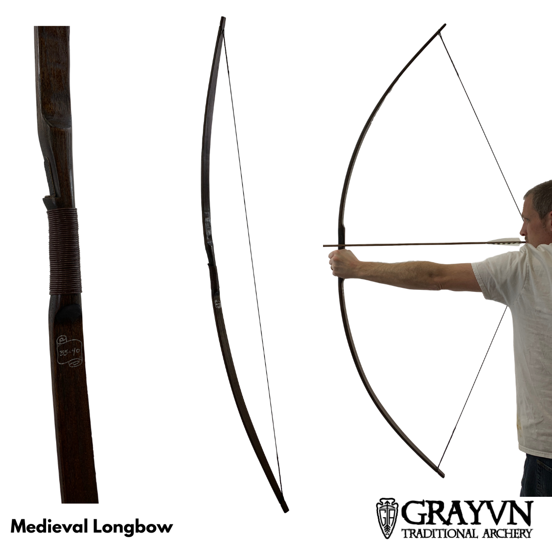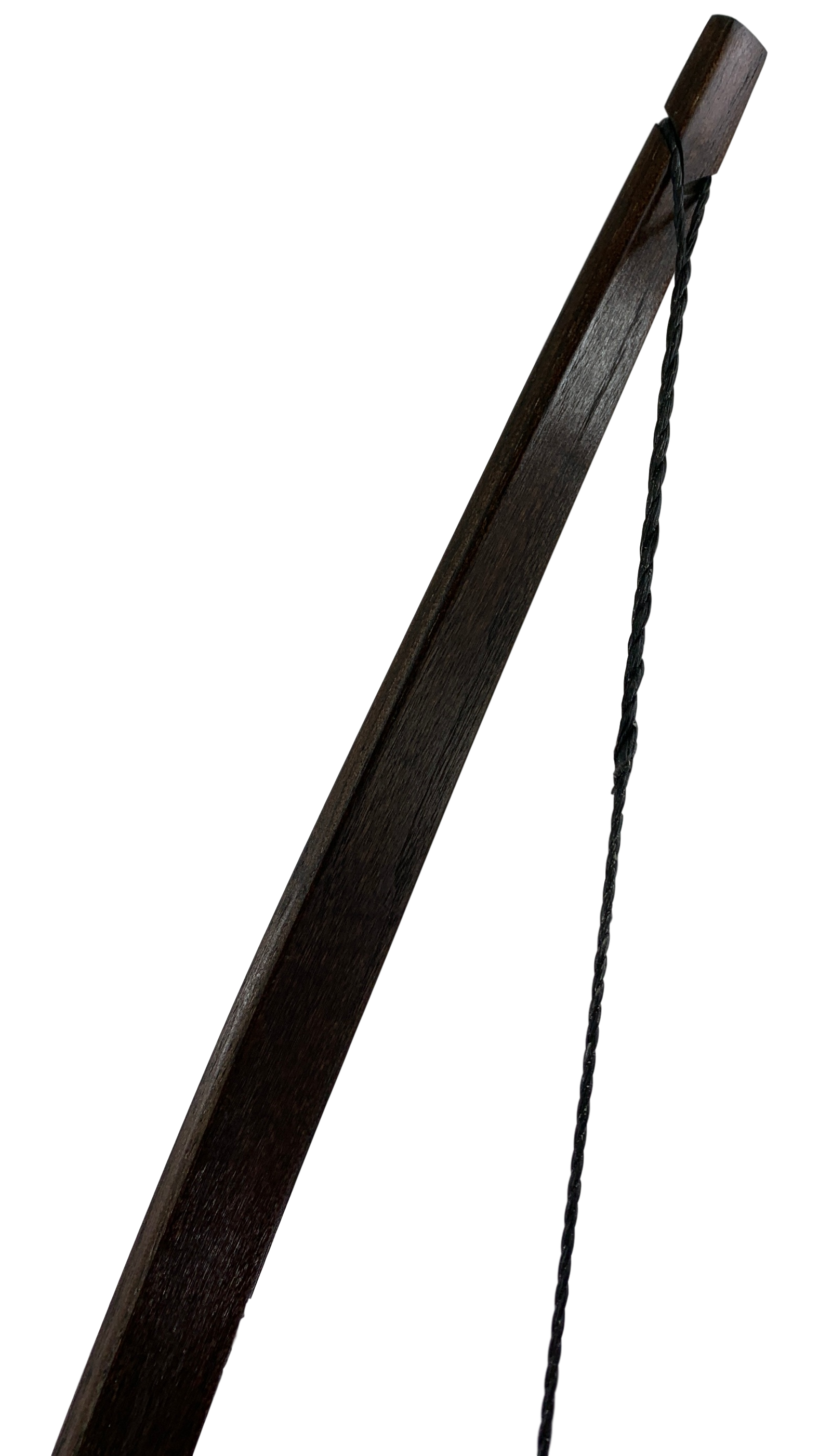 The Medieval Longbow was built to capture the bows that were held by medieval archers and bowhunters of the old world. Built from one piece of premium solid hickory and the handle is finished with a genuine leather cord wrap. The solid hickory bow is one tough hunting partner that can take the punishment of the outdoors. It is finished in a rich deep dark brown stain and sealed for protection. Each longbow also has a Hand painted banner below the handle where your draw weight and draw length are indicated. If you wish, your name can be painted below the banner as well.
