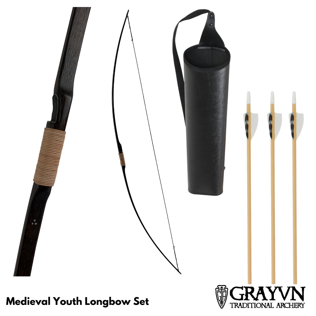 Medieval Youth Longbow plus Back Quiver and Arrows