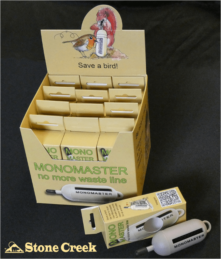 This handy tool is small and light weight & collects all the waste line that you generate when changing flies or rigs. hand from a fishing vest, in your pocket, or tackle box. Whether you generate an inch or a few yards of waste, MonoMaster provides an easy & environmentally sound solution.