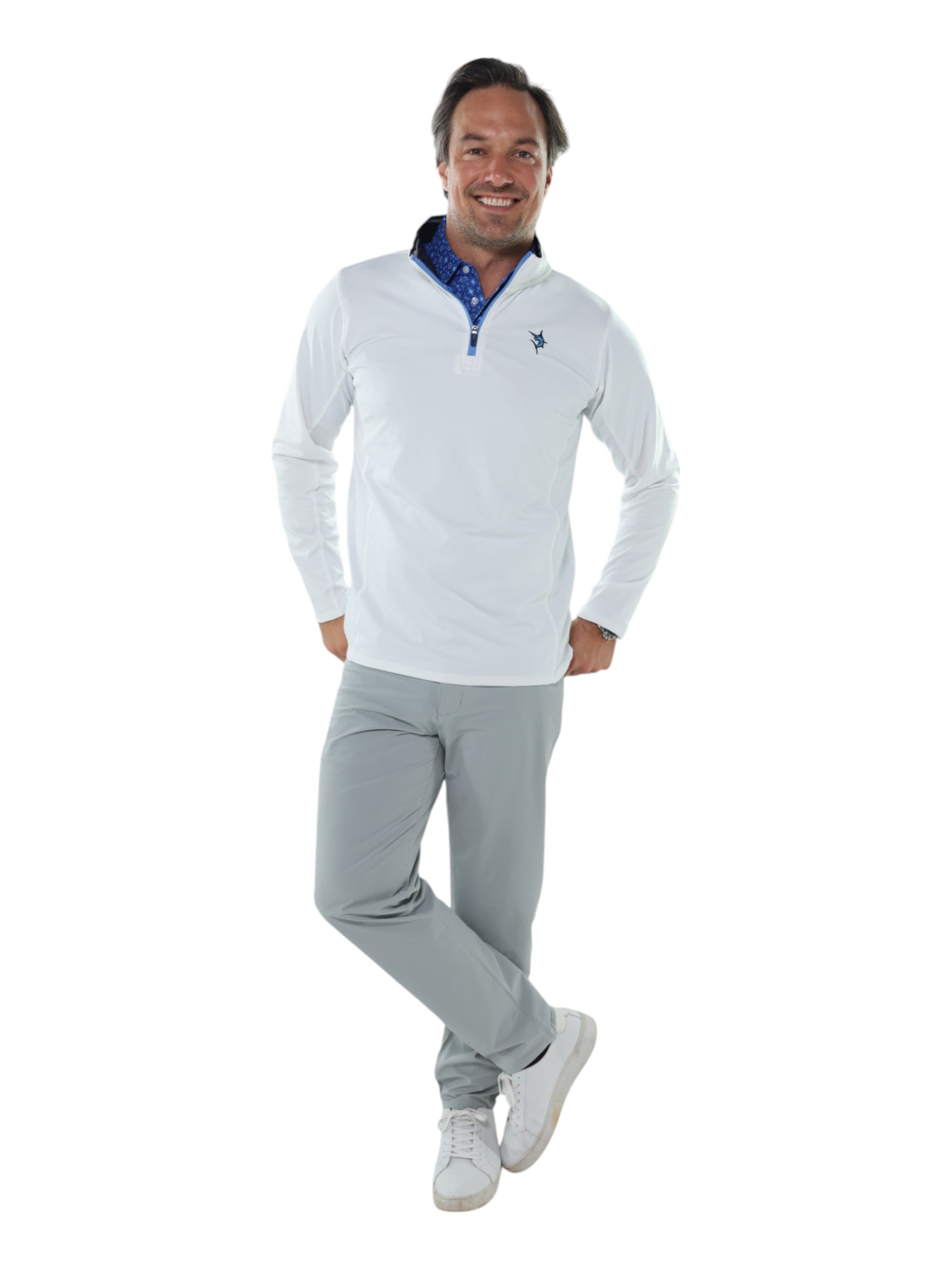 The tip of Long Islands east end. Montauk is famous for many things and just a great place to visit with family and friends. The Montauk 1/4 zip pullover features soft brushed poly spandex and side venting, for a great hand feel and just the right amount of stretch. Great for a harbor walk, out to dinner or a round of golf when a long sleeve top is needed.