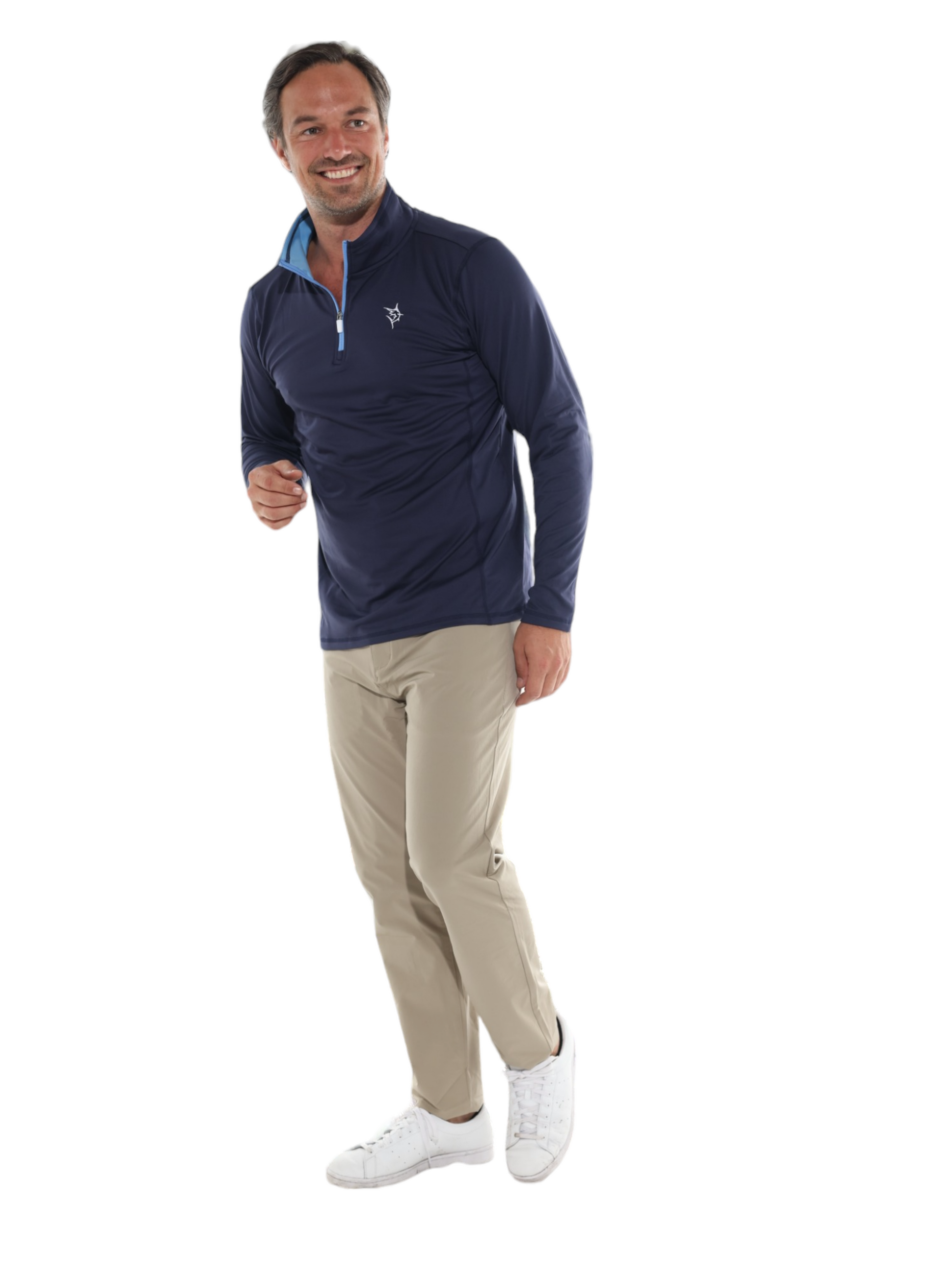The tip of Long Islands east end. Montauk is famous for many things and just a great place to visit with family and friends. The Montauk 1/4 zip pullover features soft brushed poly spandex and side venting, for a great hand feel and just the right amount of stretch. Great for a harbor walk, out to dinner or a round of golf when a long sleeve top is needed.