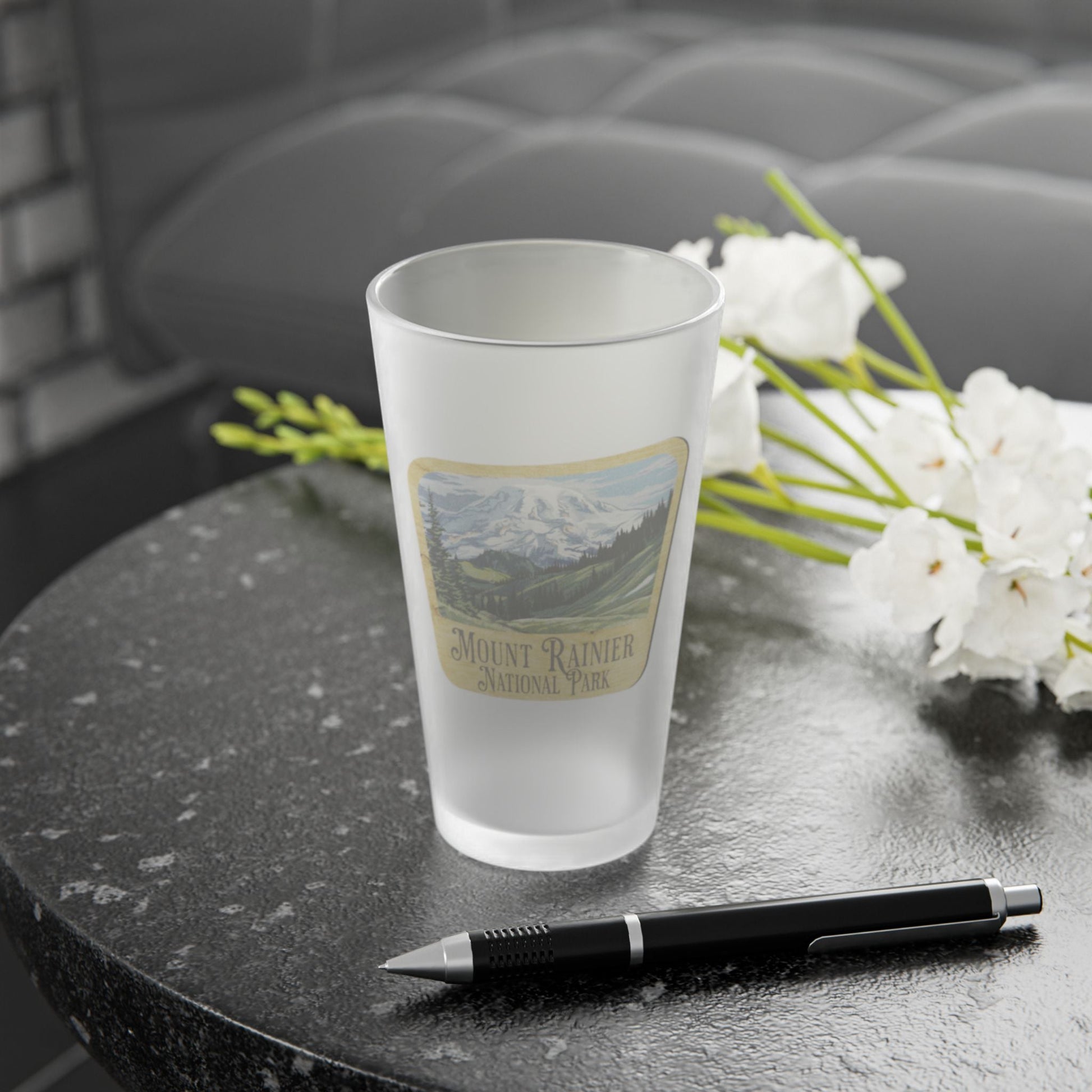 Mount Rainier National Park Frosted Pint Glass Sign