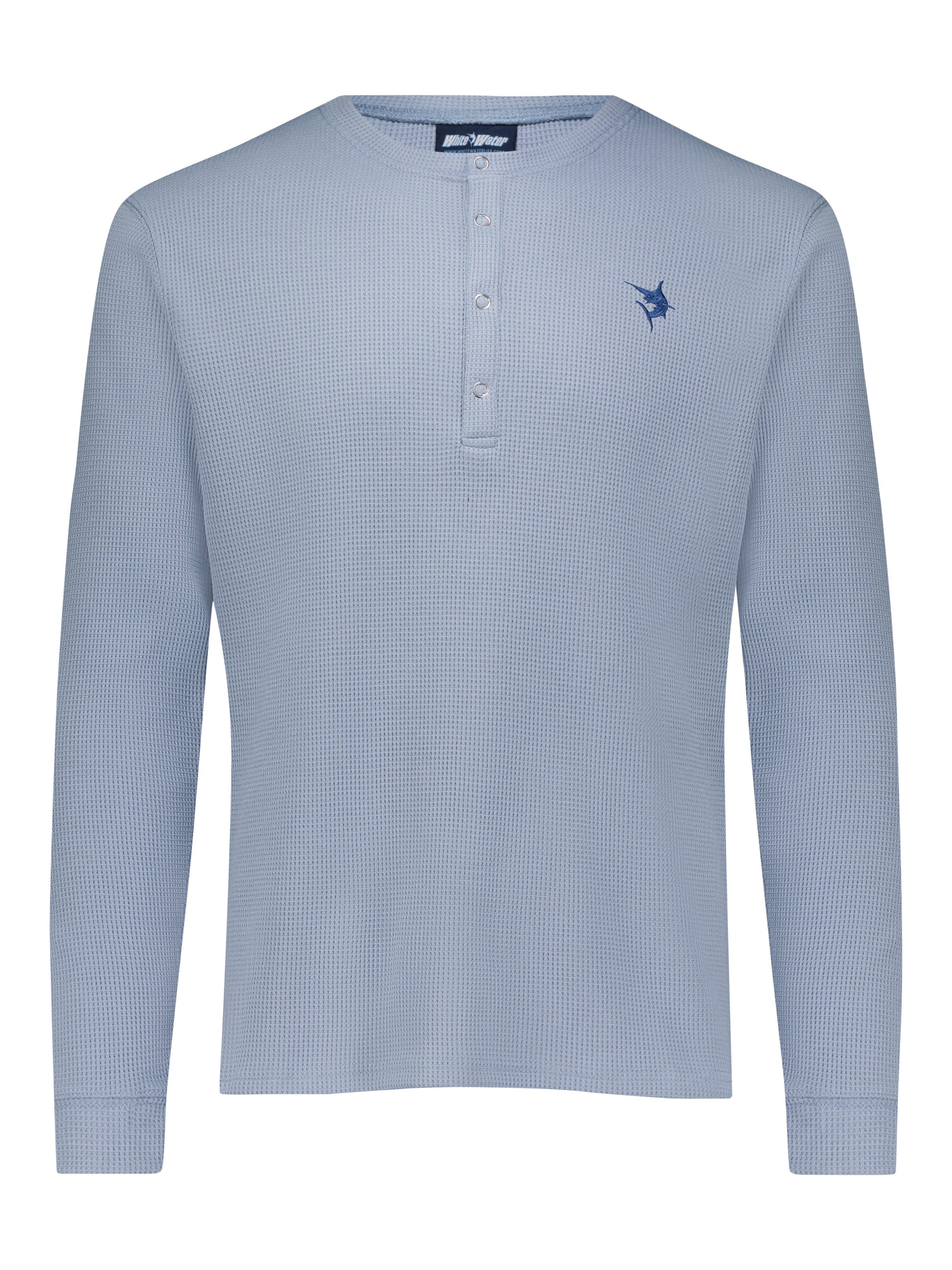 New to our line is out long sleeve Henley, featuring waffle lightweight thermal fabric. Great feel and fit with four button chest and neck closure. Embroidered solid icon logo on the left chest.