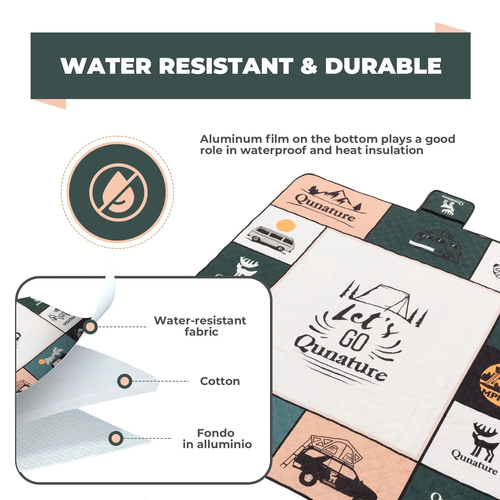 - Waterproof & Heat-Insulating: Made with a moisture-proof and heat-insulating aluminium film bottom, ensuring the ground stays dry and comfortable.