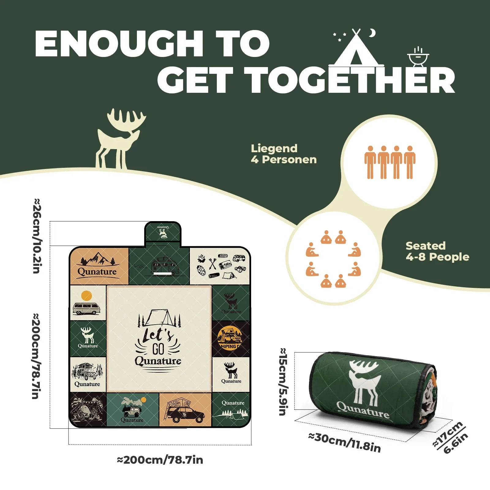 - Spacious Design: Widened and large-sized to comfortably accommodate 6-8 people, making it ideal for group picnics or camping.