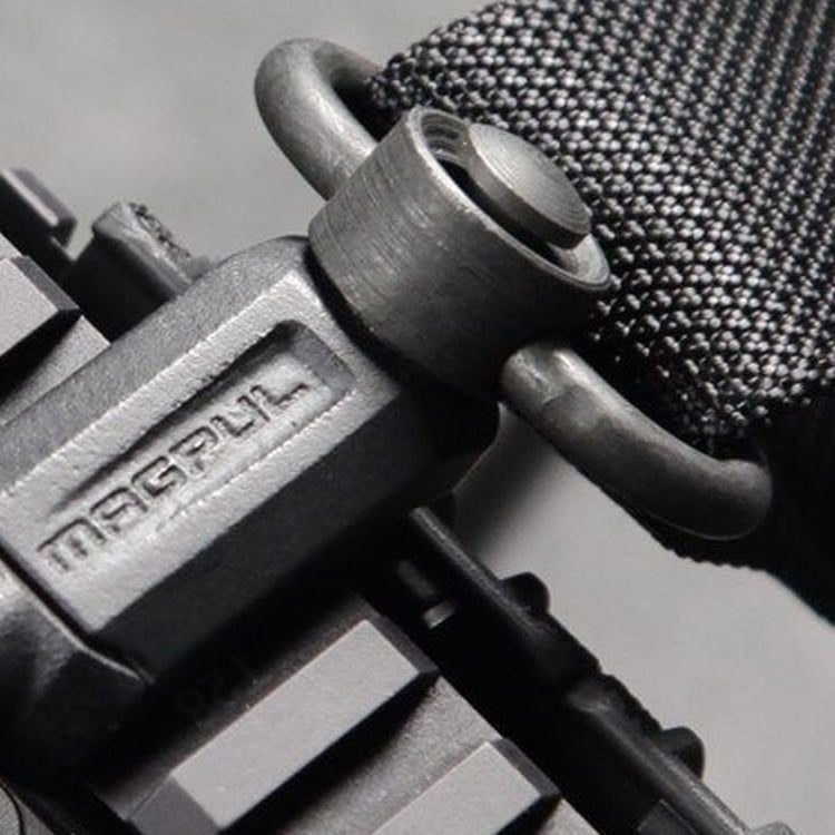 The RSA QD provides a forward attachment point for the Magpul MS4® Sling and other push-button QD slings. Made from corrosion resistant QPQ salt bath nitrided steel, mounts on 1913 Picatinny rail, and places the attachment point at an angle optimized for comfortable two-point sling use while maintaining easy push-button access.