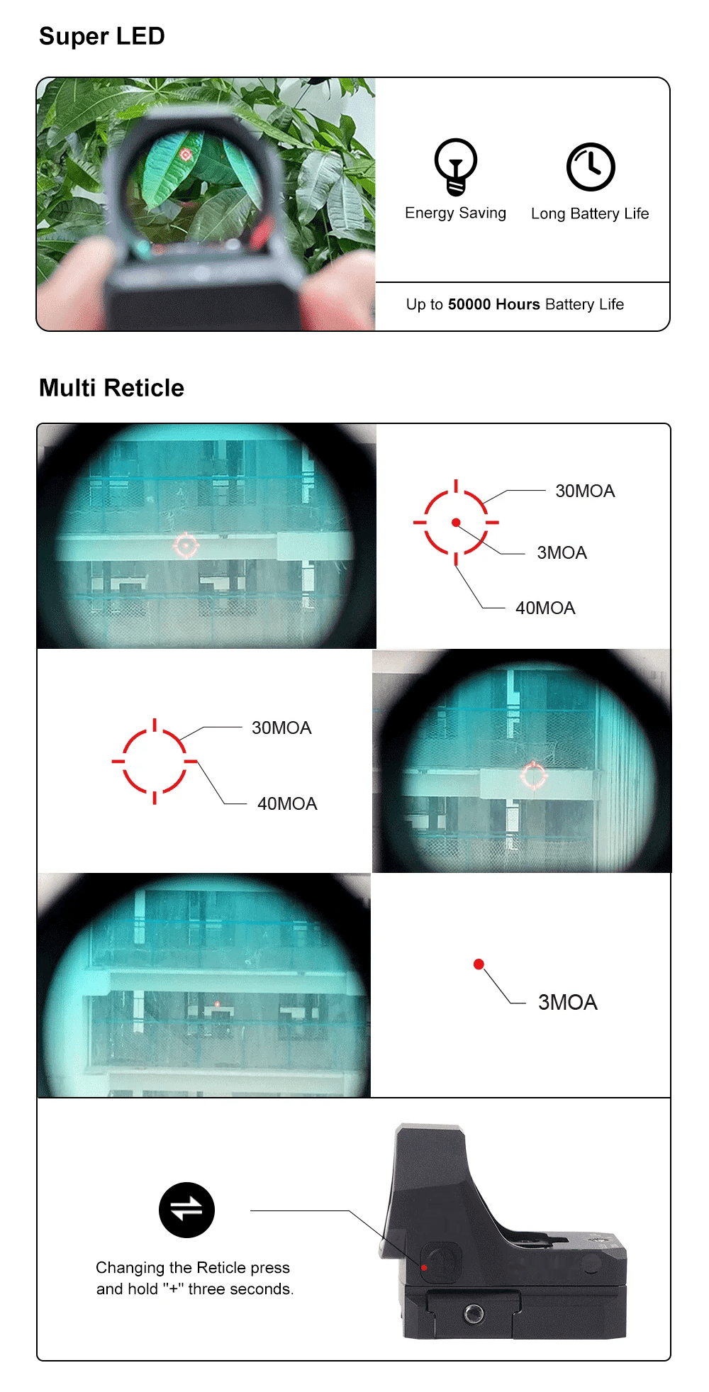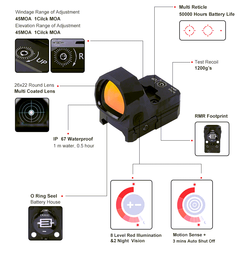 - Reticle Color: Red