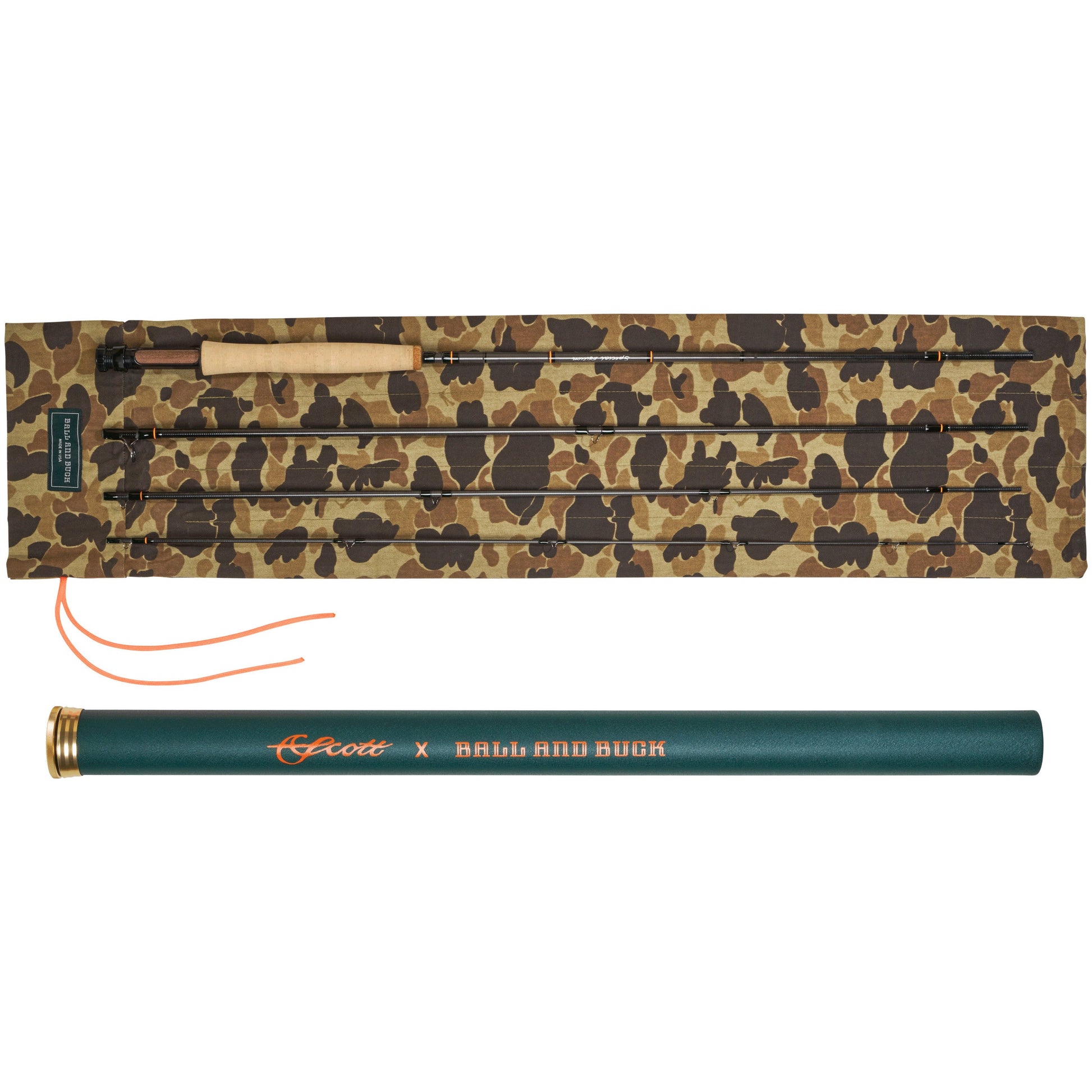 Introducing the Scott x Ball and Buck Special Edition Centric Fly Rod, which is a testament to craftsmanship and adventure. This limited-edition collaboration is handmade in Colorado by Scott Fly Rods and boasts unmatched strength and flexibility. Blaze orange and dark green accents pay homage to the outdoors. This nine-foot, five-weight, four-piece rod is collapsable for easy transport and travel. Every rod includes a Ball and Buck original camo rod sleeve, and it's your ticket to reeling in those monster trout with confidence. It’s ideal for the fishermen in your life, and it's more than just the only rod you need – it's a legacy.
