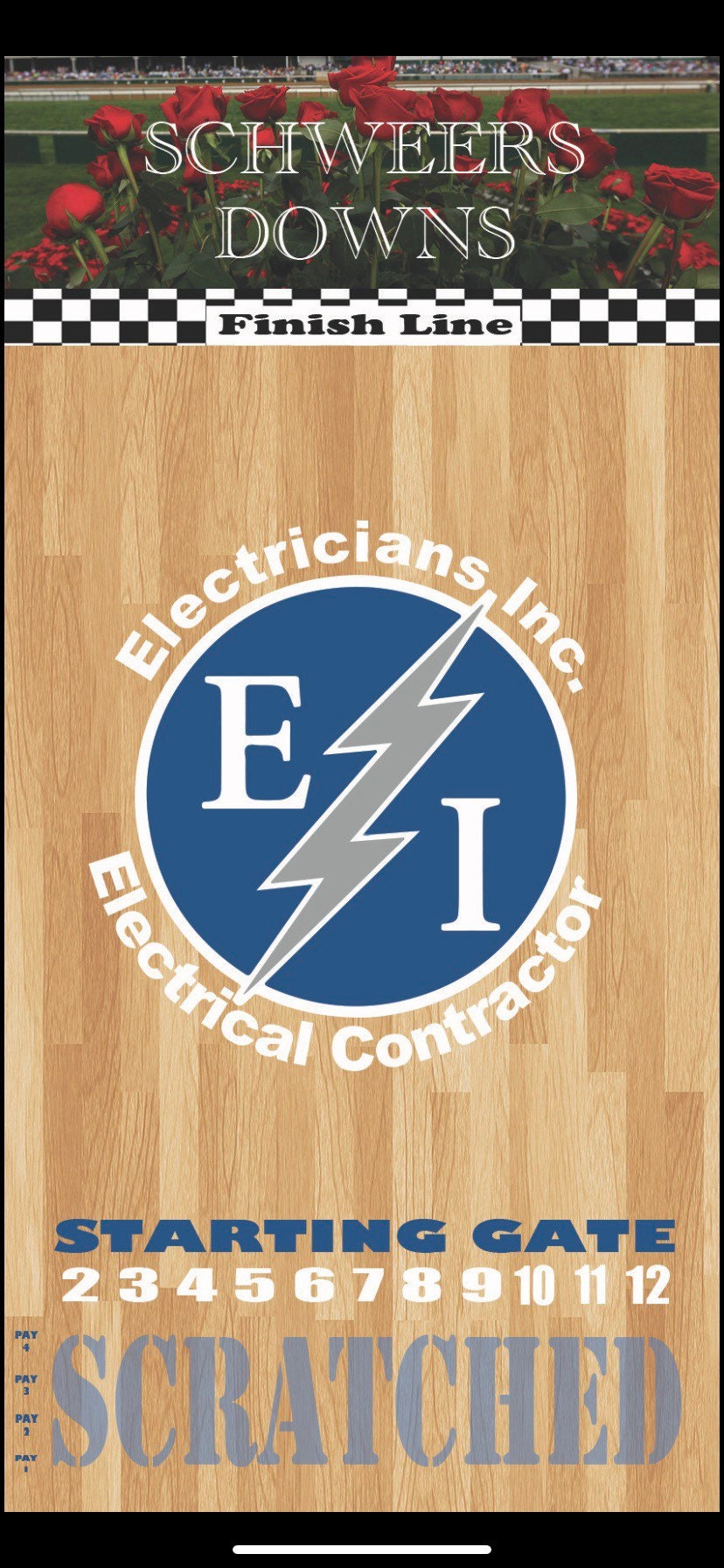 - custom graphics optional including background design, pay outs, drinking spaces, add a name (ie Smith Downs).