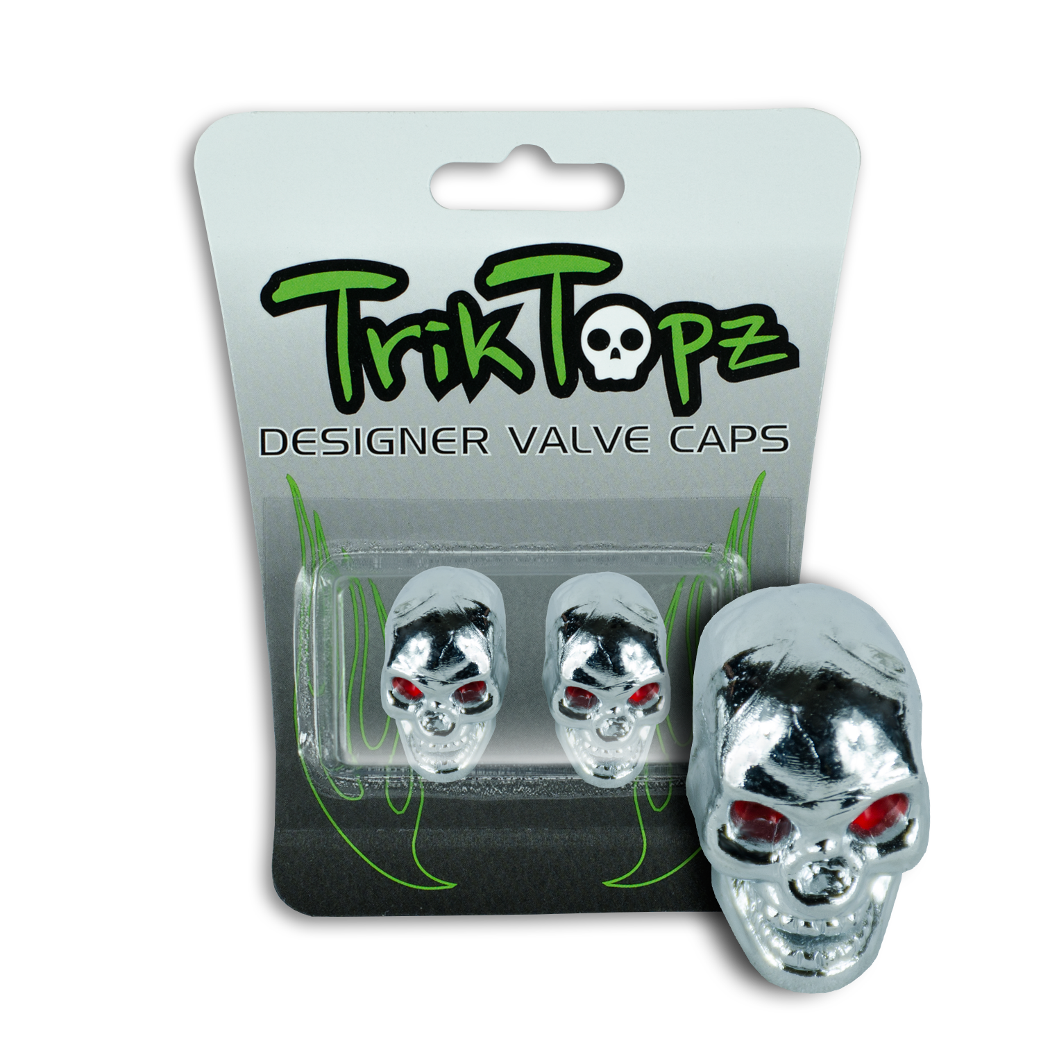 Trik Topz Valve Caps Skull Head Valve Cap - Chrome 2Pk