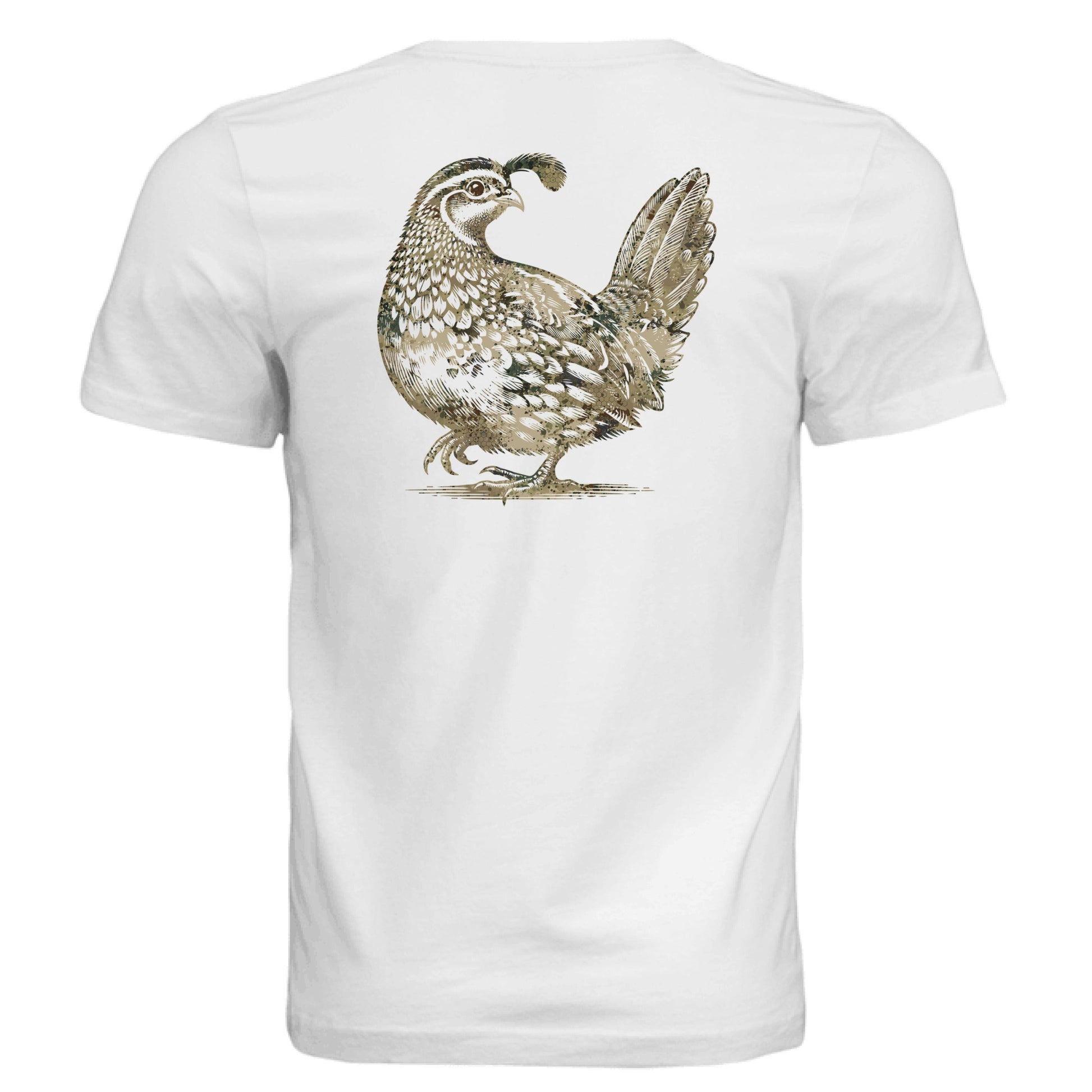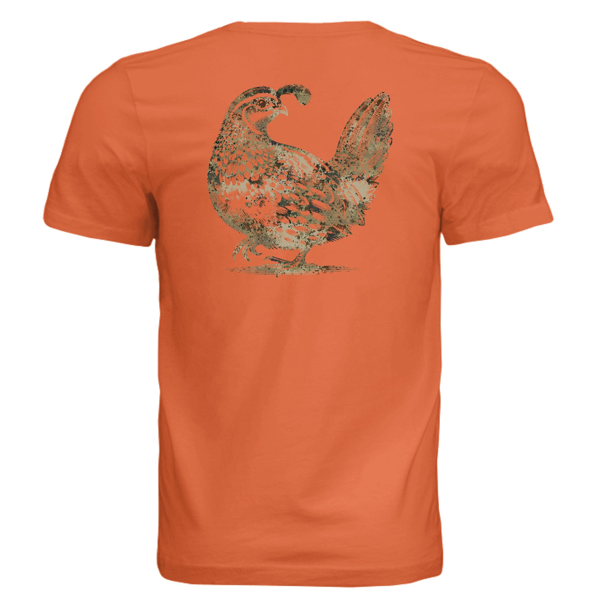 Celebrate the charm and challenge of upland hunting with the Upland Splash Burst Camo California Quail T-Shirt. Featuring a warm, field-inspired splash camo backdrop and a detailed California quail graphic, this shirt captures the excitement of flushing coveys and crisp walks through golden grasslands. Crafted from a soft, breathable cotton-poly blend, it’s built for comfort in the field, at camp, or during everyday wear. Perfect for hunters who chase the call of the uplands.