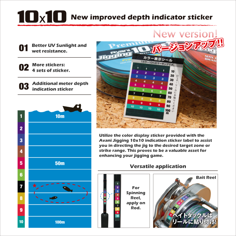 - 10 x 10 metered color system (10 colors every 10 meters) for exact line and depth measuring.