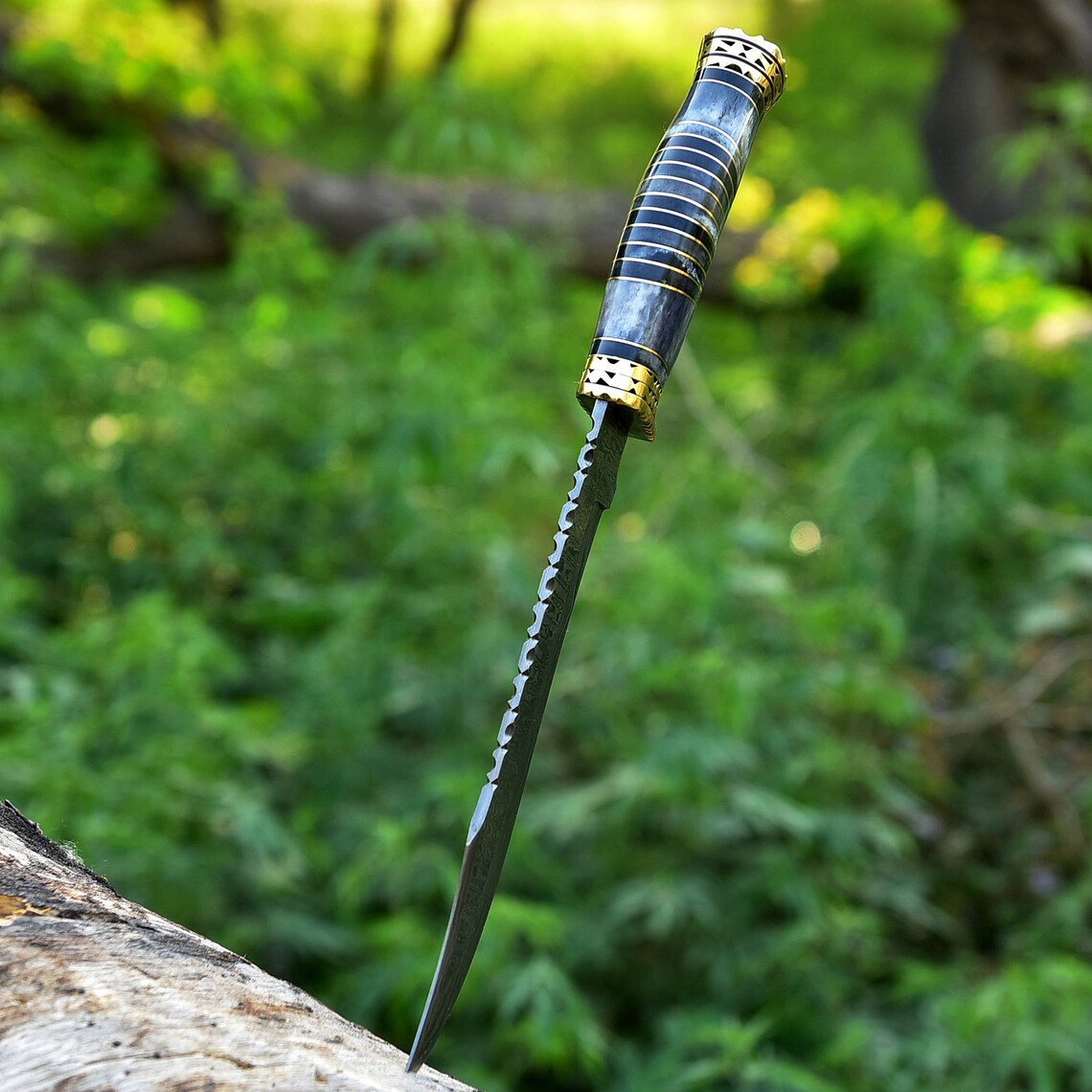 - 13-inch Damascus Steel Blade: Known for its durability, razor-sharp edge, and beautiful wave pattern.