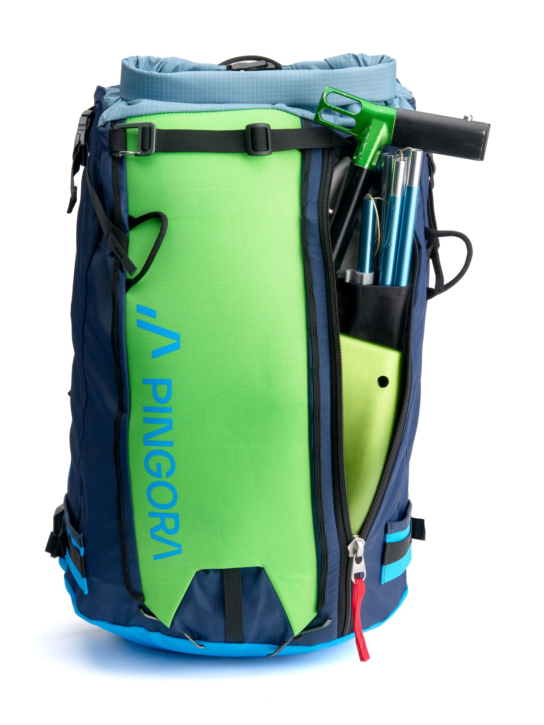 Built on the successful Vivid 27, the Vivid 35 adds bigger backcountry volume, a roll-top entry and internal helmet carry options. An added internal wire frame back panel increases its load carrying capability with minimal added weight. Designed for backcountry safety, the Vivid 35 delivers fast access to avalanche tools thanks to an EYL luggage zipper from YKK, especially designed for durability and abrasion resistance. This first-in-the-industry innovation speeds access to shovel and probe when seconds count.